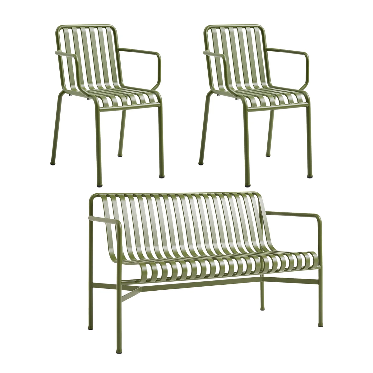 What makes the HAY What makes the garden bench a particularly practical piece of garden furniture is the slatted arrangement of the seat, which guarantees that rainwater can drain away. The powder-coated steel tubes are robust and stable, making the bench an ideal piece of outdoor furniture.