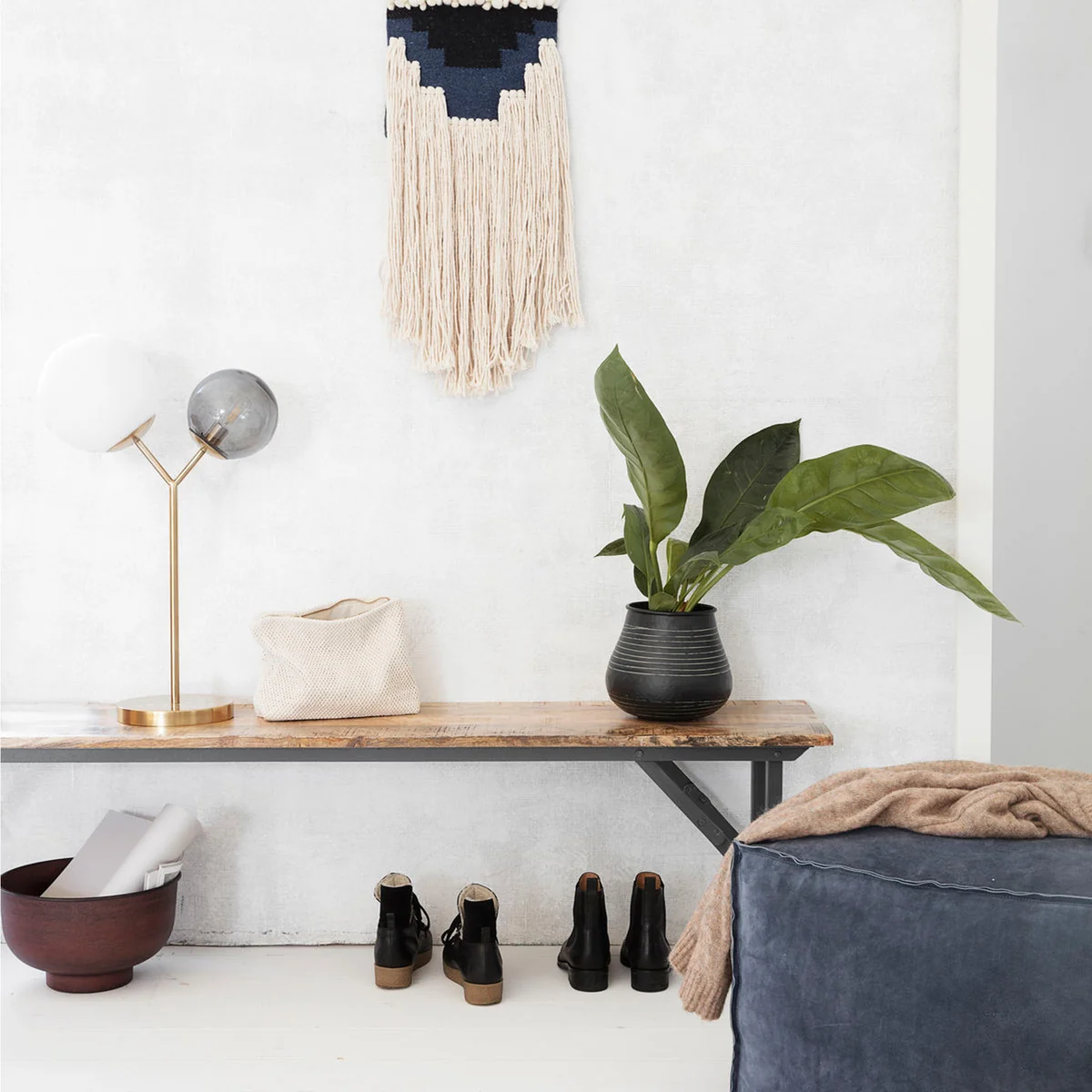The bench is made with a robust mango tree seat and a sturdy iron frame. The simple and natural appearance of the bench blends in well with any ambience. The bench is also available in various colours.