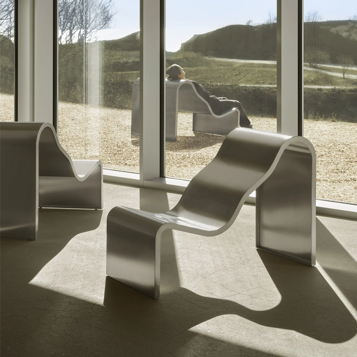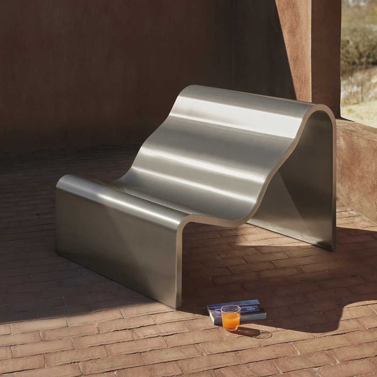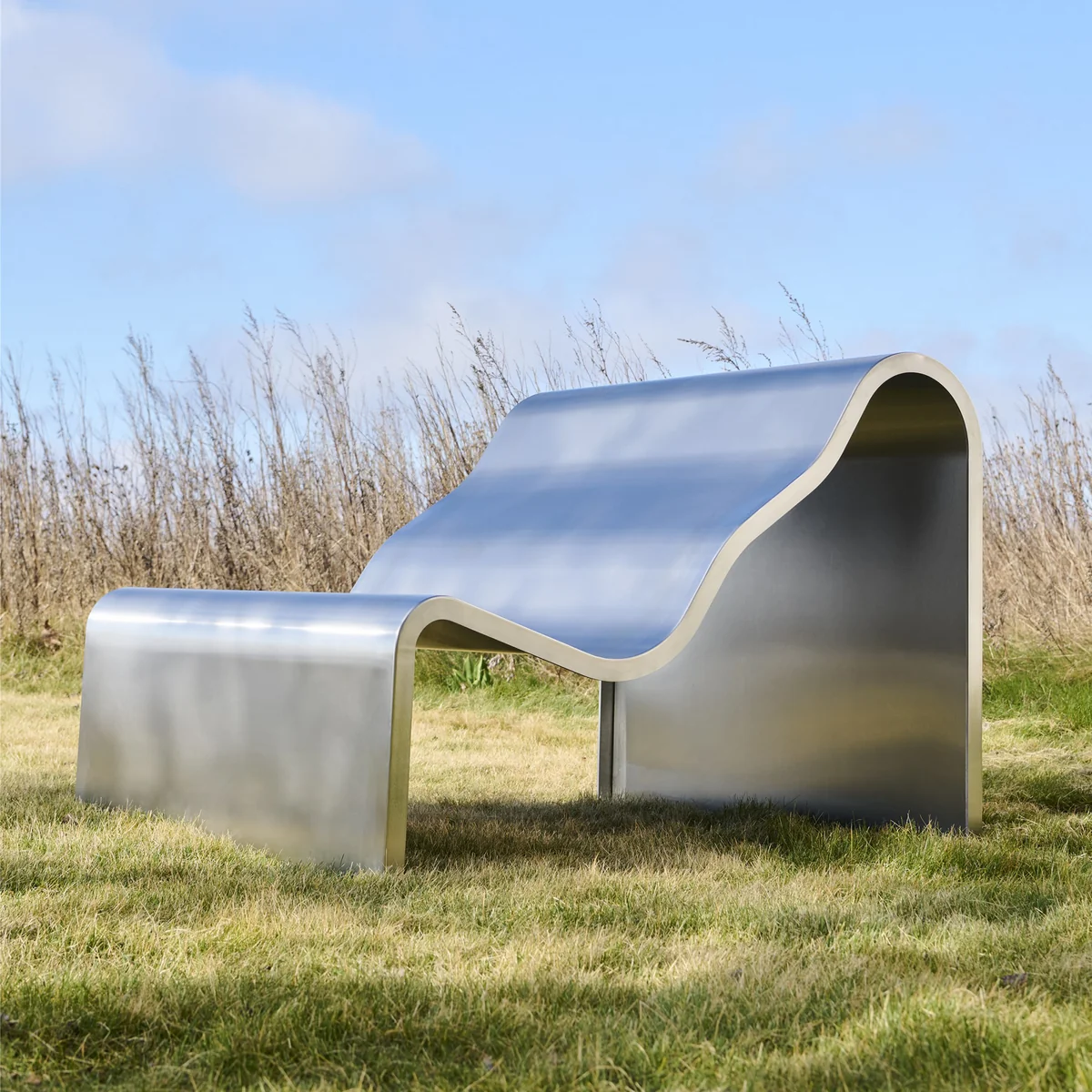 The Dream View Bench from Muuto looks like a silent observer between architecture and nature. Its softly flowing curves follow the line of the body and invite you to spend moments allowing thoughts to float by like clouds. Made of stainless steel, its surface carries the changing light of the day like a gentle echo and reinforces the feeling of space and openness.
