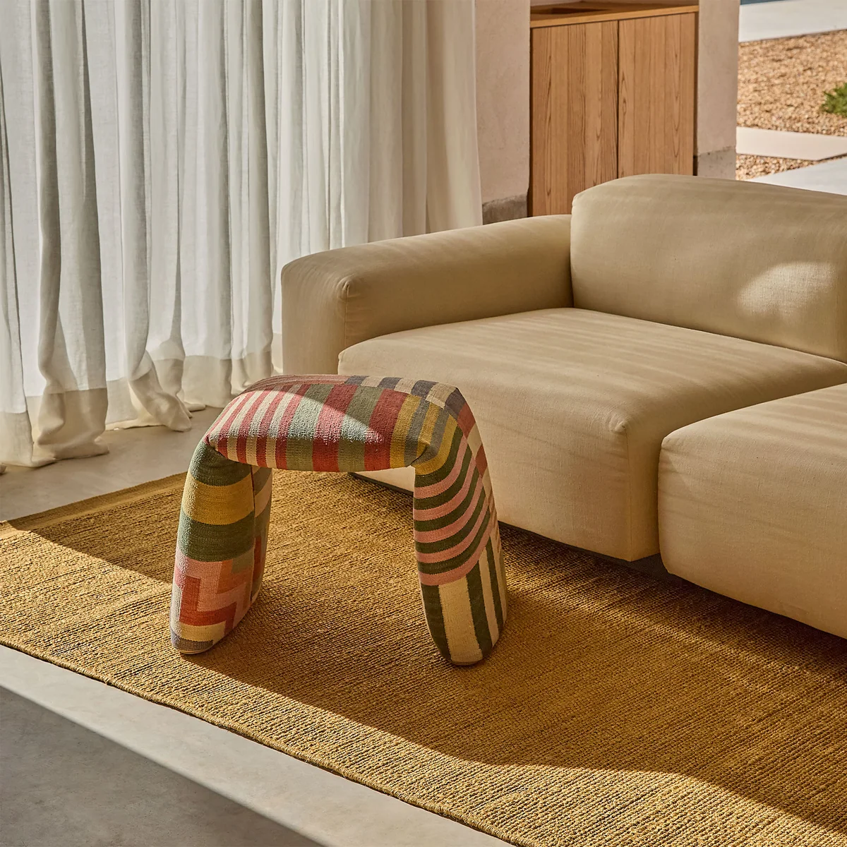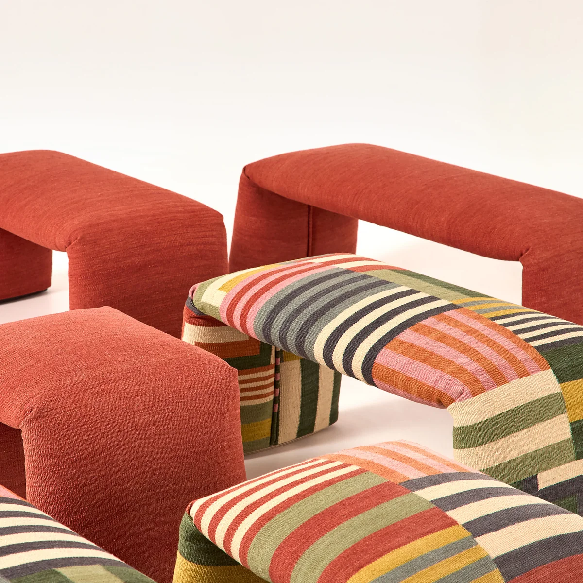 The Folded bench reinterprets the concept of the rug and transforms it into a versatile piece of furniture. As a fusion of form and textile expression, Folded elevates the original carpet motif to a functional object beyond the floor - as a bench for the hallway, bedroom or living room. The silhouette and the upholstery are inextricably linked: expressiveness and function go hand in hand here. Folded is available in three carefully selected versions - each with its own aesthetics and effect.