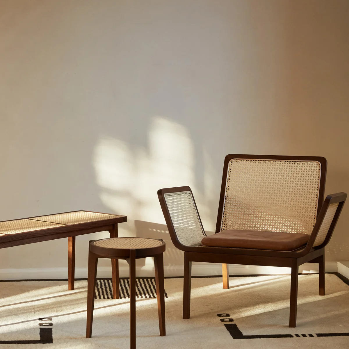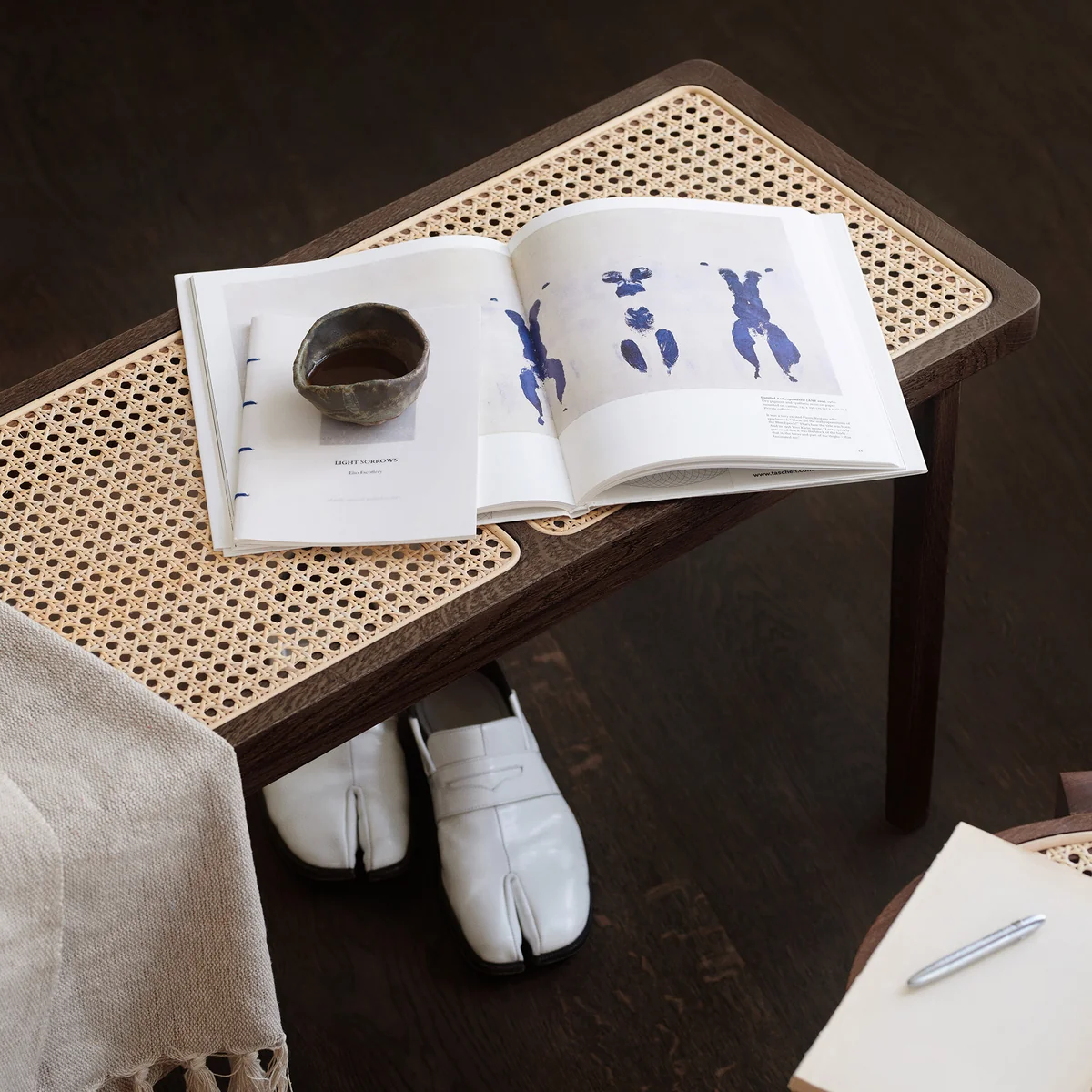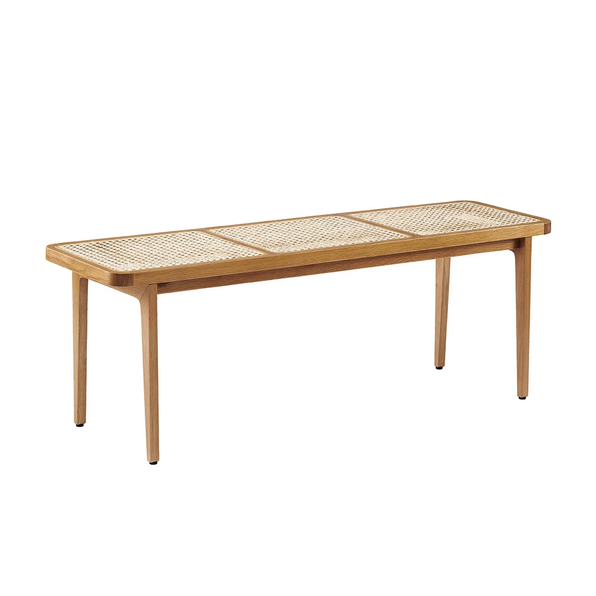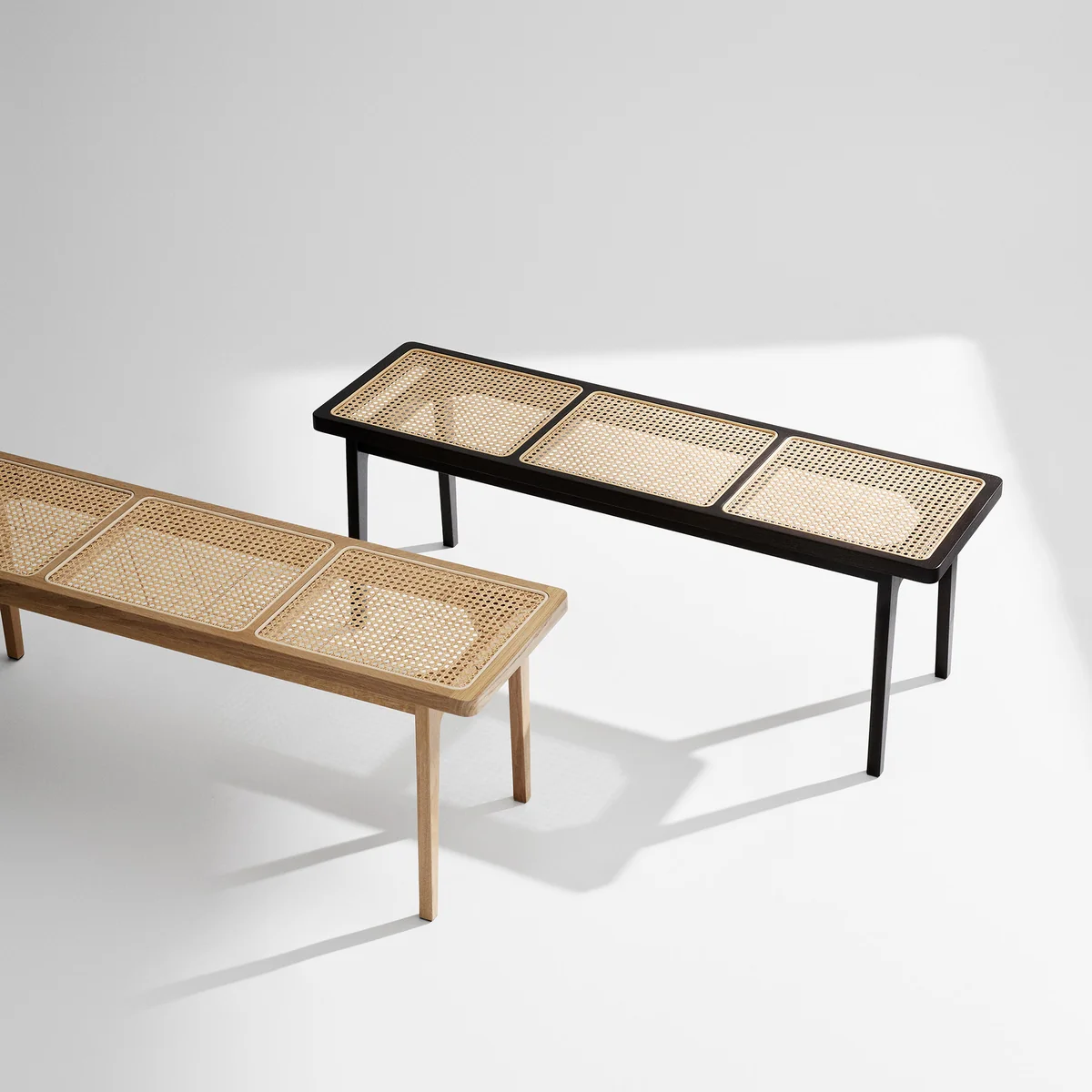 The Le Roi by Norr11 is a bench with a classic look, designed by Kristian Sofus Hansen and Tommy Hyldahl. Le Roi is the French word for king, and the series is a minimalist interpretation of French colonial rattan furniture fused with familiar Scandinavian furniture archetypes such as the three-legged round table and the rectangular bench.