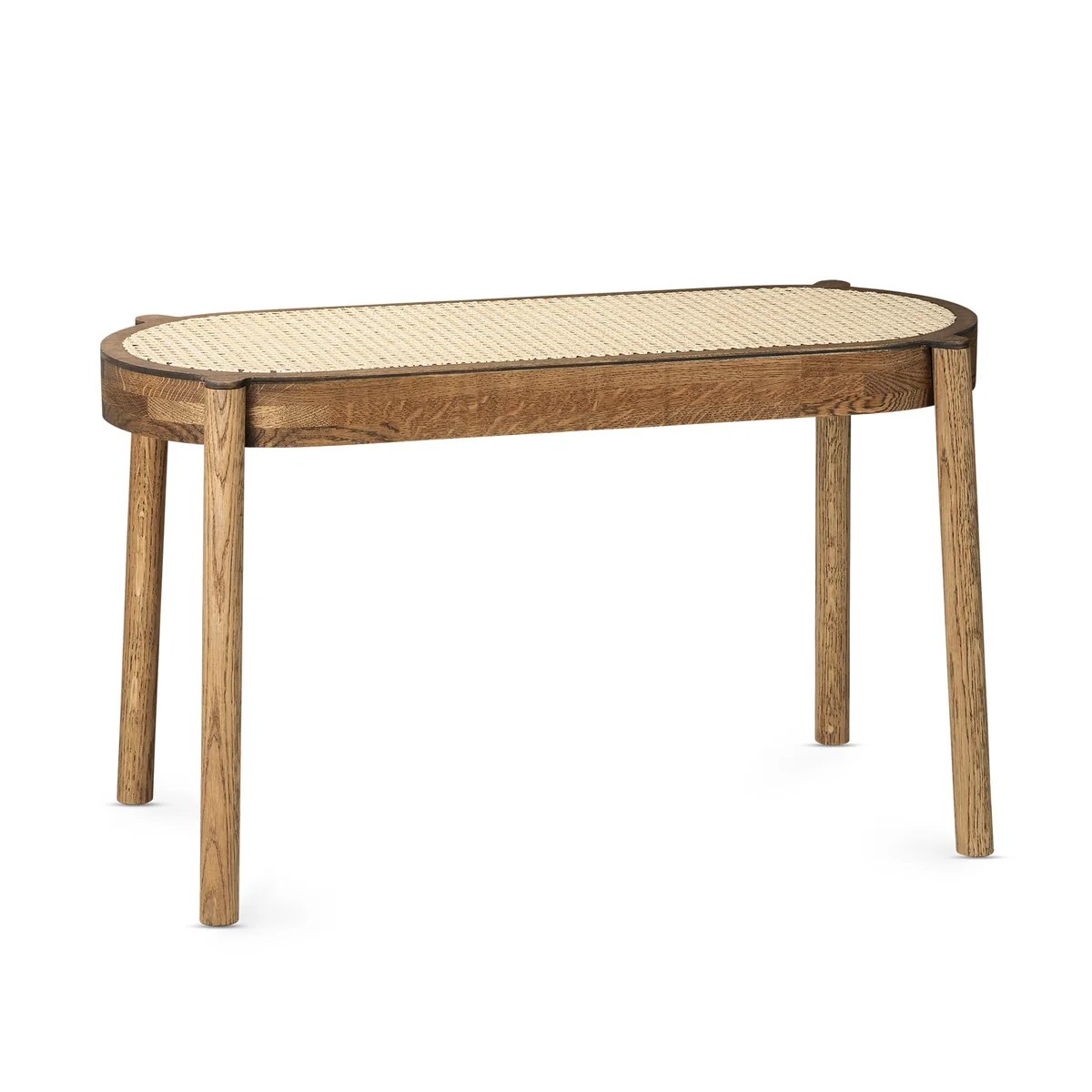 The seat is made of reed fibre, the frame is made of oak wood and is available in several colour variations.