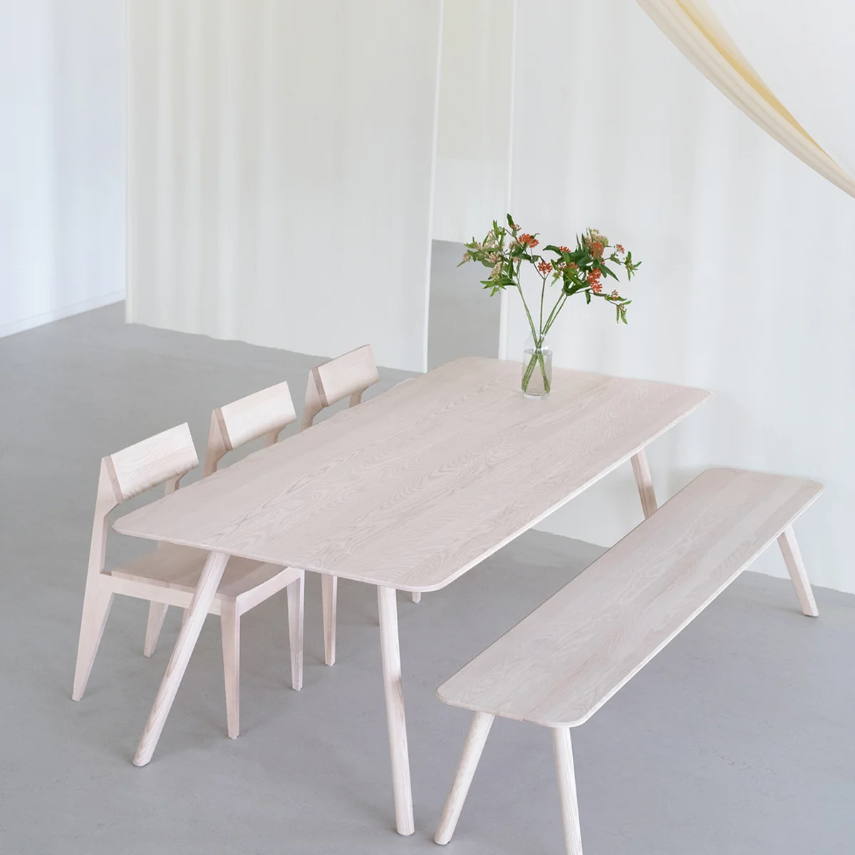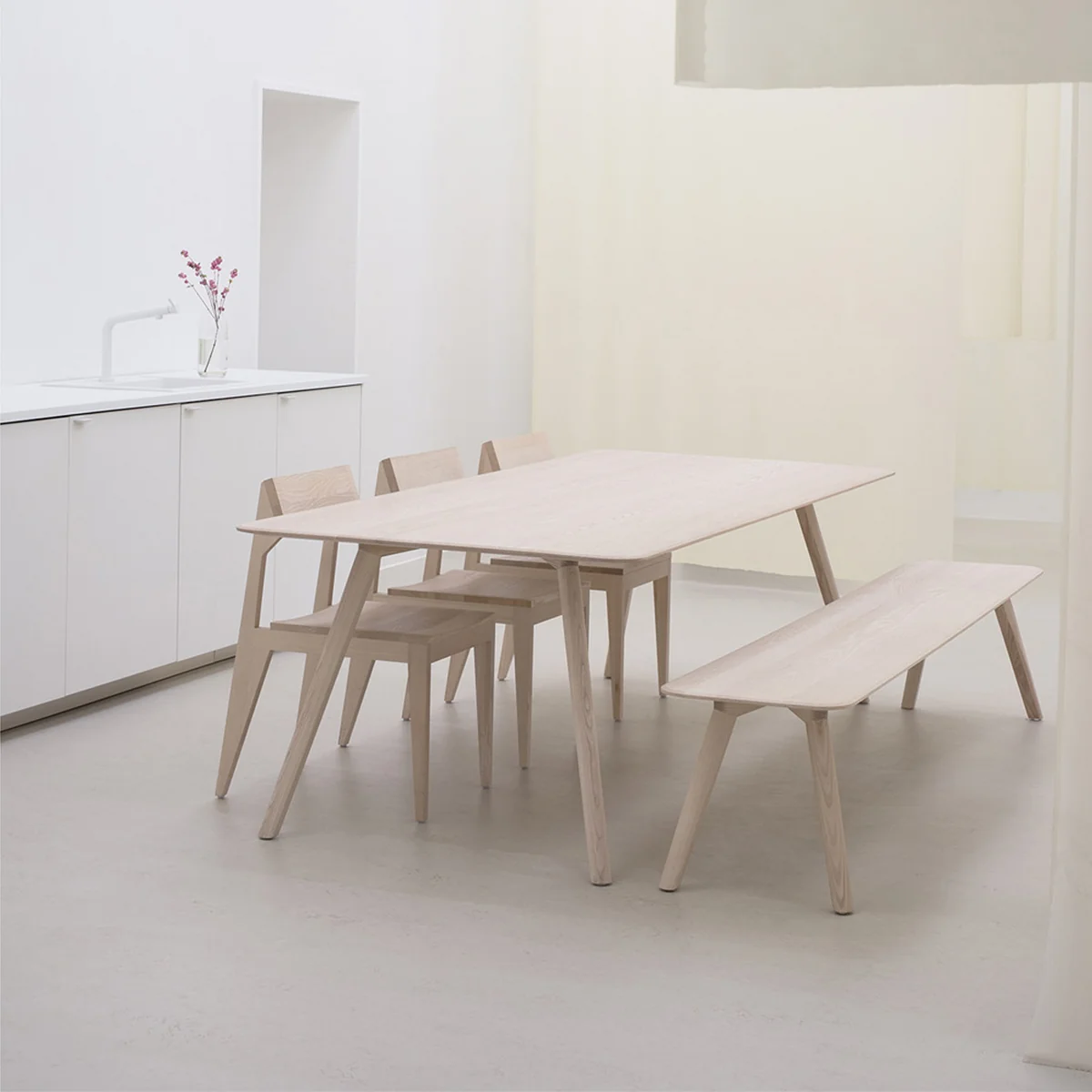 The bench was manufactured, like all products of OUT Objekte unserer Tage , in traditional handicraft workshops that meet the highest quality standards. The Meyer Bench is made of oak or ash wood, whose grain is clearly visible and thus sets natural accents.