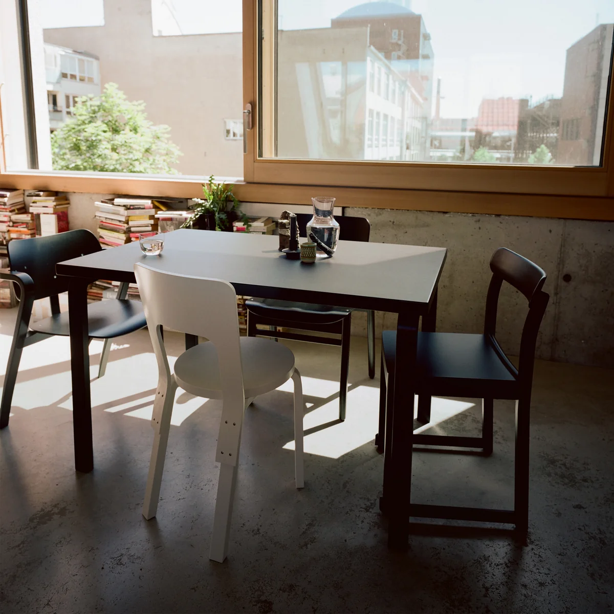 The Aslak Chair by Artek impresses with its elegant, versatile design, with which it fits in public facilities such as hotels or restaurants as well as in your home. With its short, rounded armrests, it can easily be placed at desks or dining tables. The seat and backrest are comfortably curved so that you can sit comfortably for hours. Already designed by Ilmari Tapiovaara in 1946, the Aslak Chair was not manufactured until 1958, when technical progress made mass production possible. As a pioneer of modern Finnish design, Tapiovaara tried to combine plasticity with economical use of materials - a requirement that the Aslak chair fulfills perfectly.