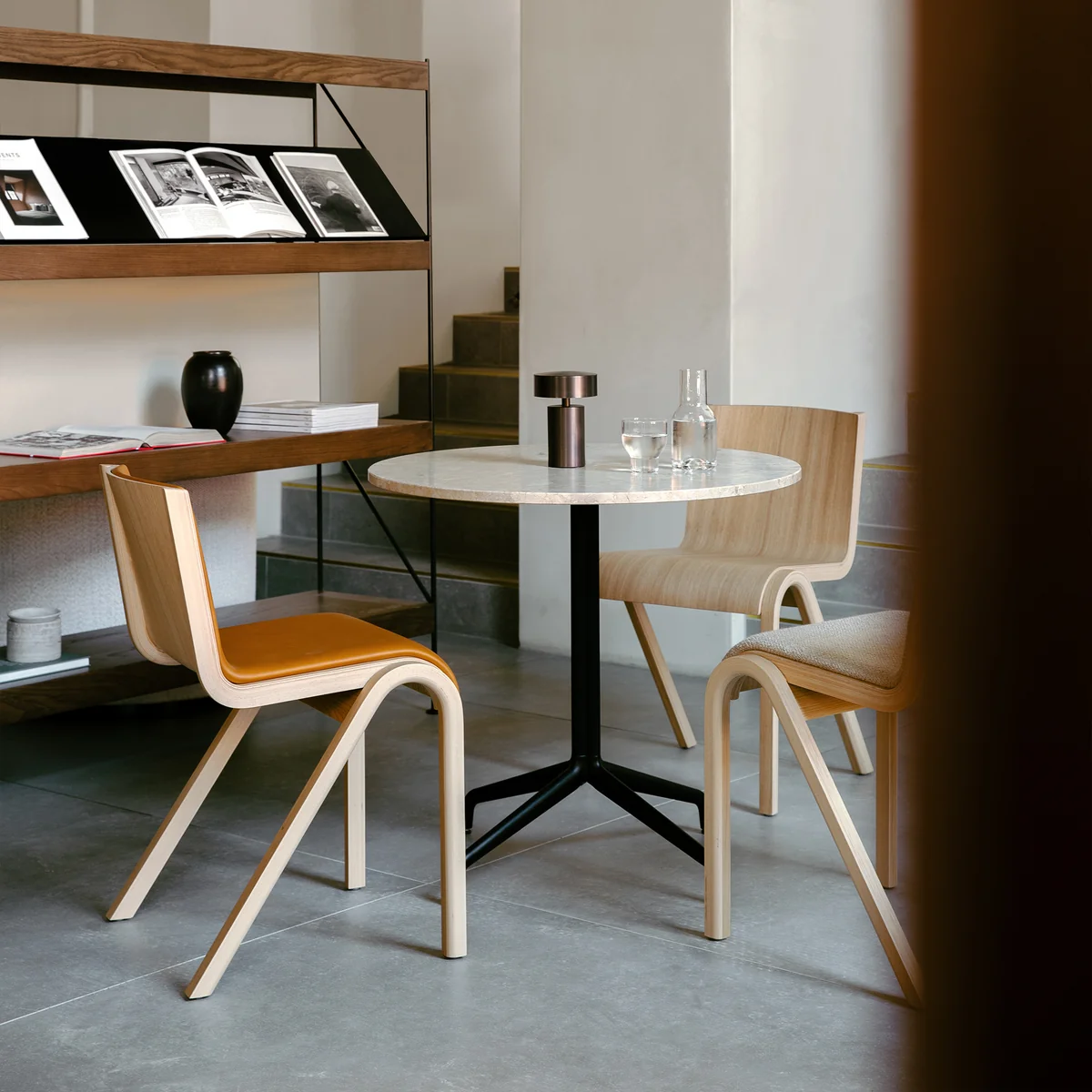 The Ready Dining Chair from Audo is made from beech wood and oak veneer with the FSC® seal. It is available in different colors and as a fully upholstered version. In addition, up to 10 of the chairs can be stacked.