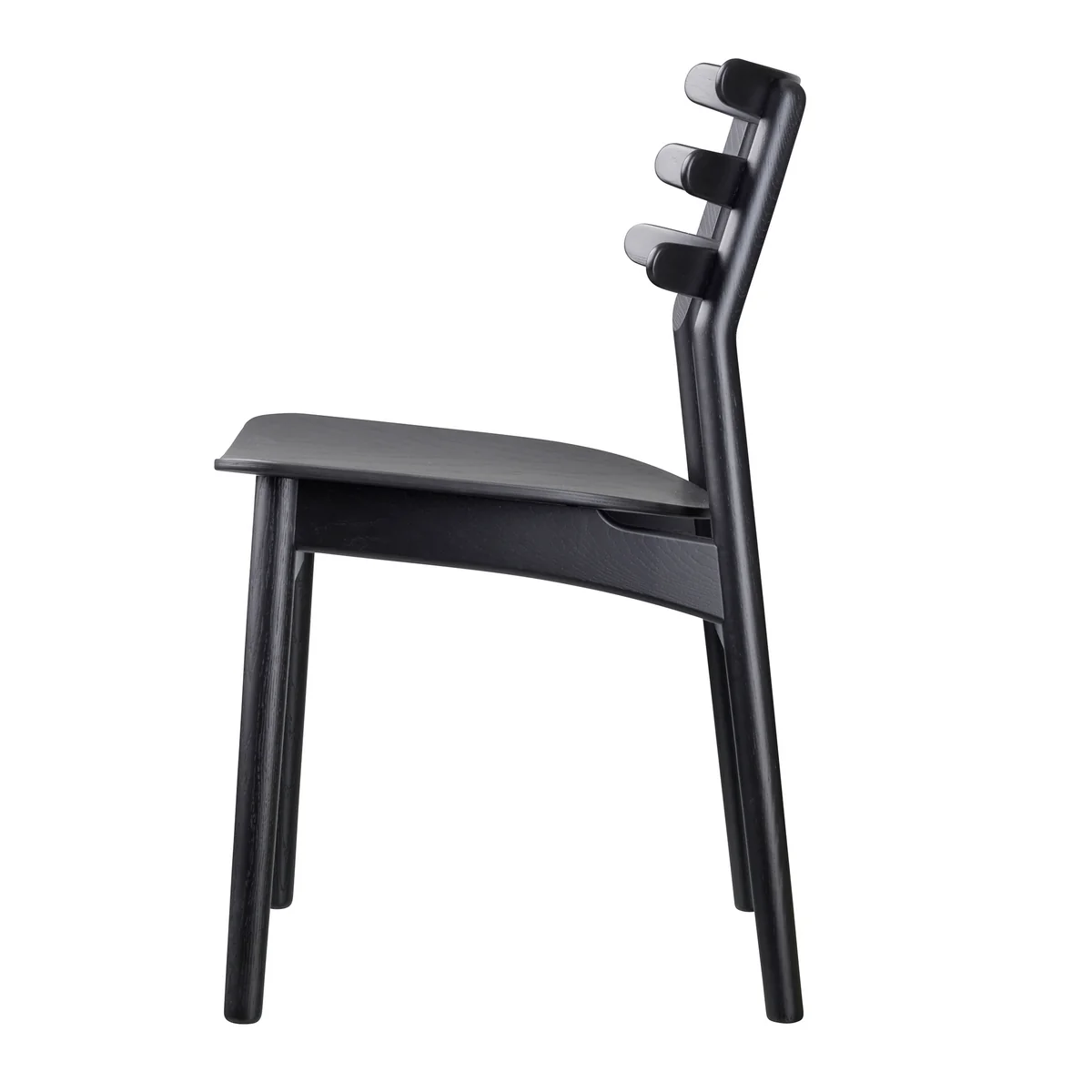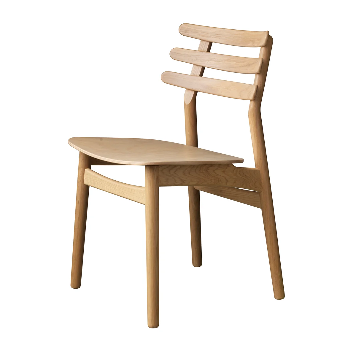 The J48 chair is from FDB Møbler is a design by designer Poul M. Volther and is clearly identifiable as a classic from the golden age of Danish furniture design. Nevertheless, the chair differs from many seating furniture of its time, which are characterized by a vertically arranged backrest. The J48 chair, on the other hand, has horizontal struts that provide comfort when sitting due to their curvature.