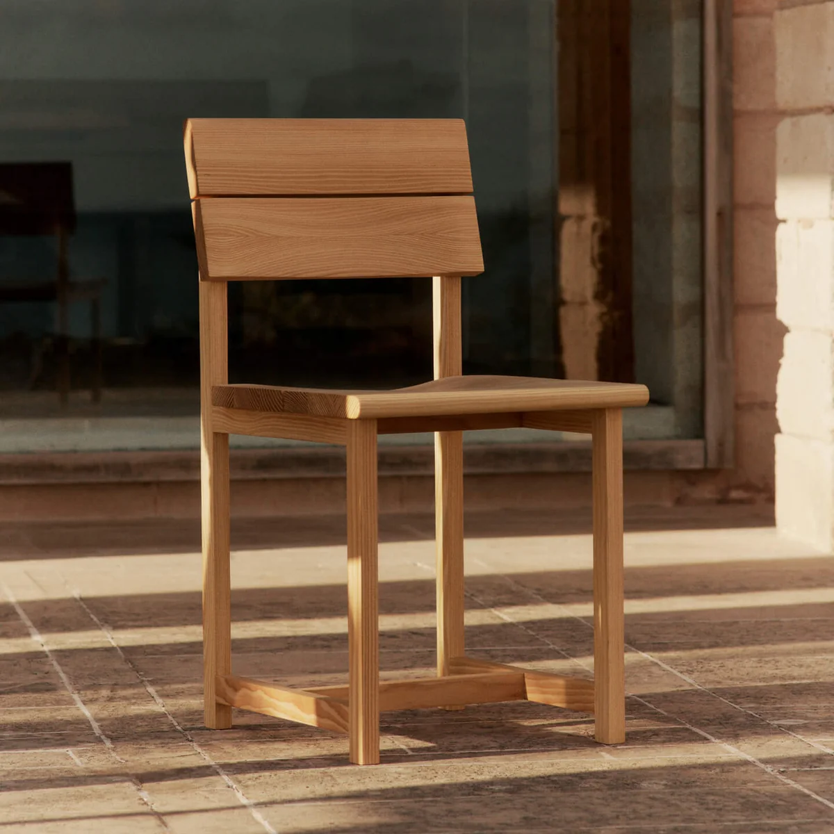 The Vist chair is a thoughtful interpretation of FSC®-certified Douglas fir that emphasizes both the natural beauty and resilience of the wood. Inspired by the joinery techniques and wooden elements in Can Lis, its design combines rustic homeliness with a light, elegant form. The gently rounded seat and curved backrest emphasize the precise craftsmanship and make the chair a timeless addition to any interior.