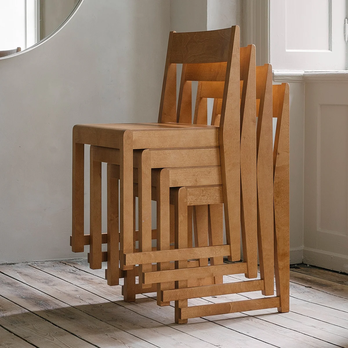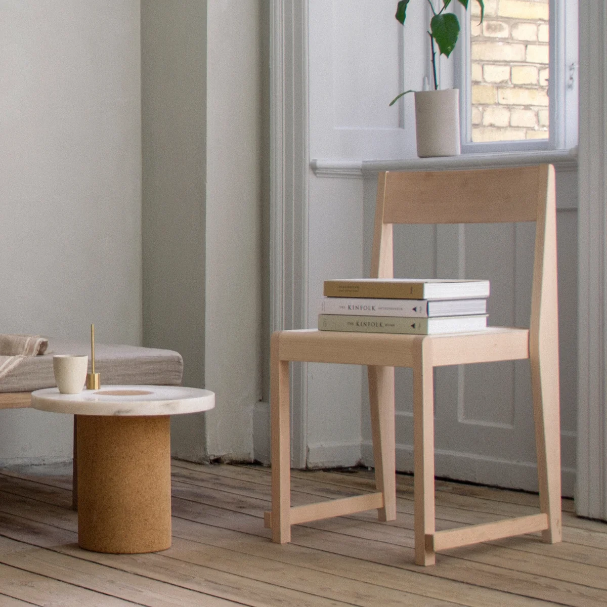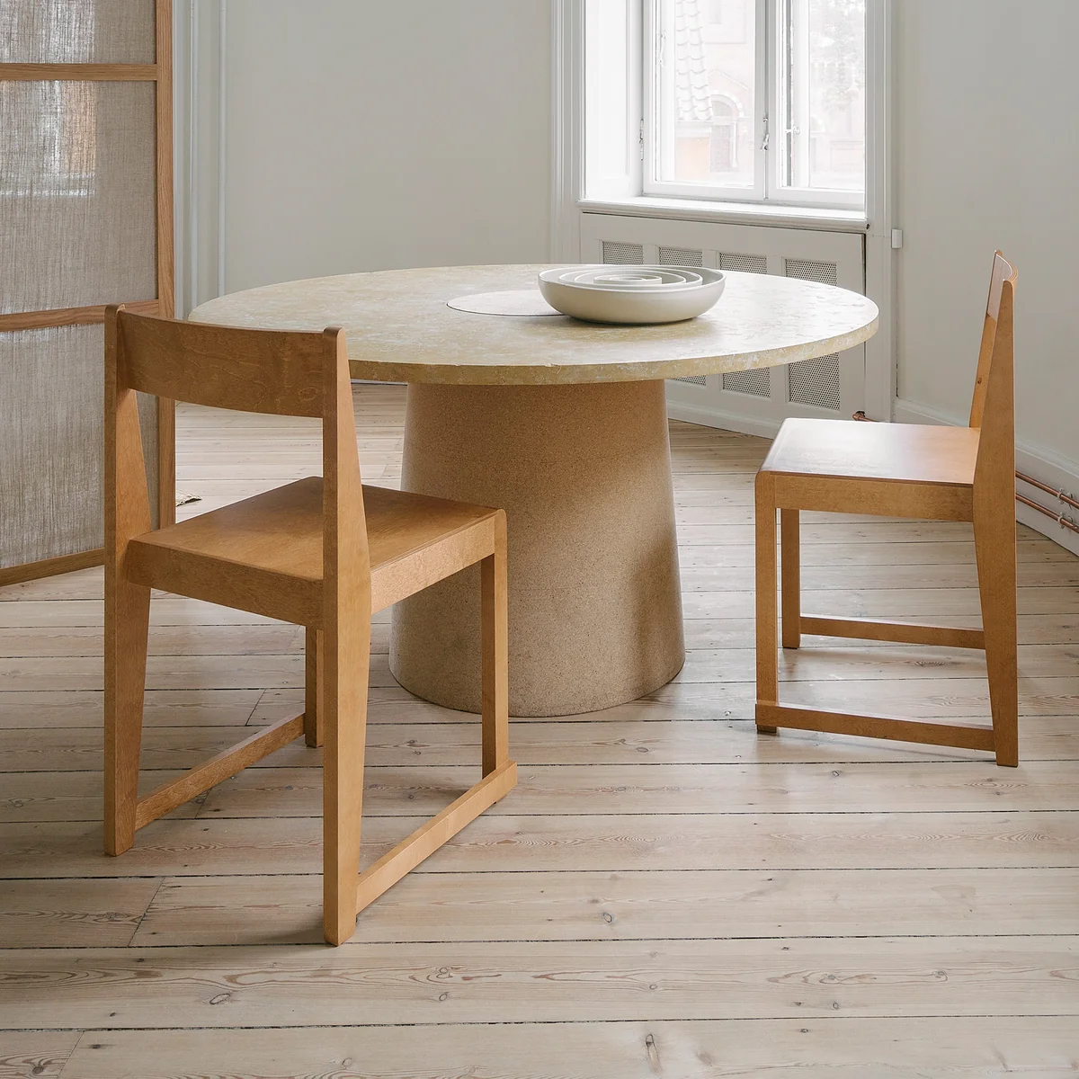 Inspired by the classic wooden chairs found in Nordic churches, the Chair 01 chair was designed by Frama . The chair is made of birch wood and has a simple design. The connection points of the individual parts of the chair are deliberately exposed to emphasize the traditional manufacturing method of the Chair 01 to emphasize. The wooden chair is wonderful as a dining chair or additional seating in the kitchen or living room. Should the Chair 01 once not be used, it can simply be stacked on top of each other and stored space-saving.