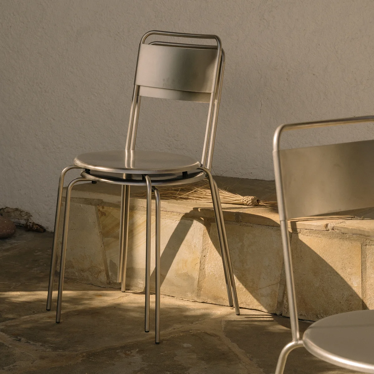 The Petit Rond chair, designed by Troels Grum-Schwensen, impresses with its minimalist, elegant design and versatility. With its slim silhouette and round seat, it fits perfectly into small rooms, cafés or flexible living concepts. Made from brushed stainless steel, the chair is robust and durable. Its stackable shape allows for space-saving storage, while optional leather or zebra fabric seats provide additional comfort and stylish accents.