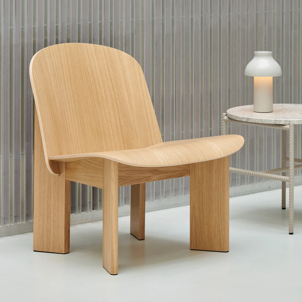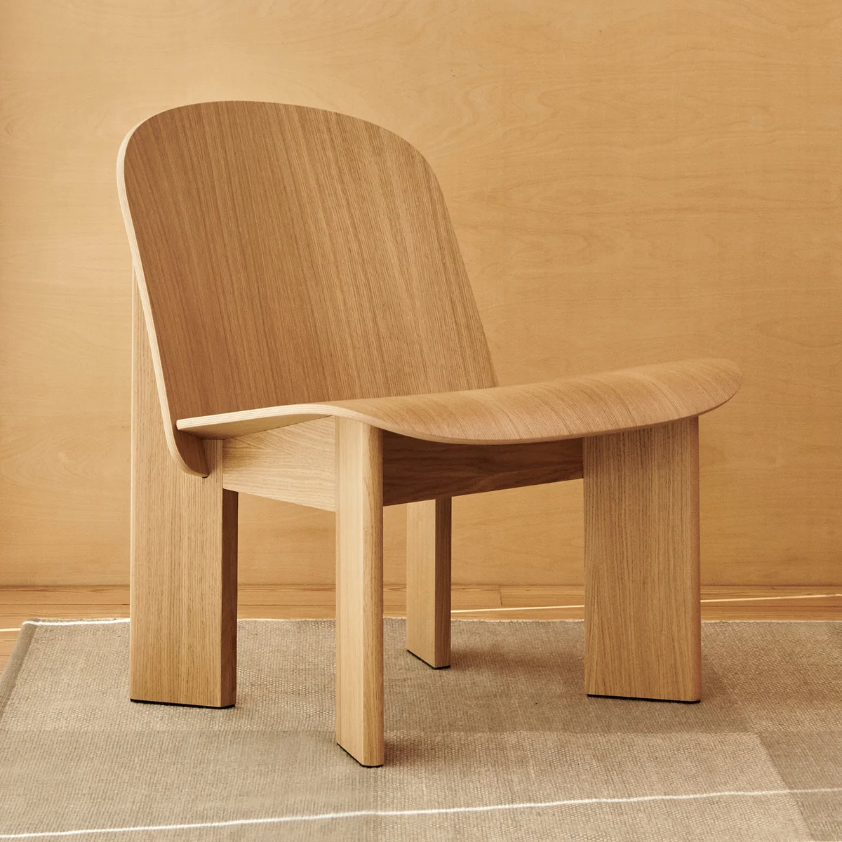 The Chisel Lounge Chair by Andreas Bergsaker for HAY is a timeless wooden chair named after the classic carpenter's tool, the chisel. The solid wooden chair with its unique silhouette offers a comfortable, organic seat and backrest with an inviting appearance. Optimal support and comfort are complemented by the angled legs and beveled edges.