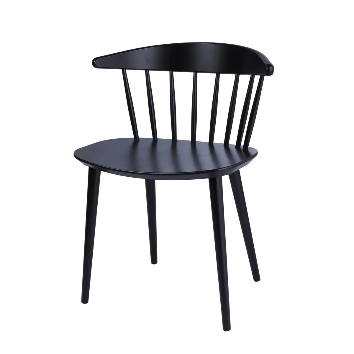 The typical Windsor chairs from the 1 8. century were the model for the J104 Chair : The filigree bars of the backrest and the traditional manufacturing from wood are a characteristic of the Windsor chairs, which Jøergen Bækmark gave a timeless design. Originally made by FDB, J104's unique structure makes it look delicate and sturdy at the same time. Its reduced design ensures that the chair still appears modern today.