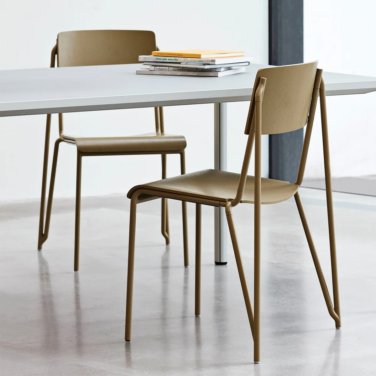 The Petit Standard chair by HAY is the result of an eight-year design process by Daniel Rybakken. Precision and well thought-out details characterize this - at first glance simple - chair. In fact, Petit Standard is a particularly easy-to-stack chair whose aluminum frame contributes to this function on the one hand and gives the chair a unique look on the other.