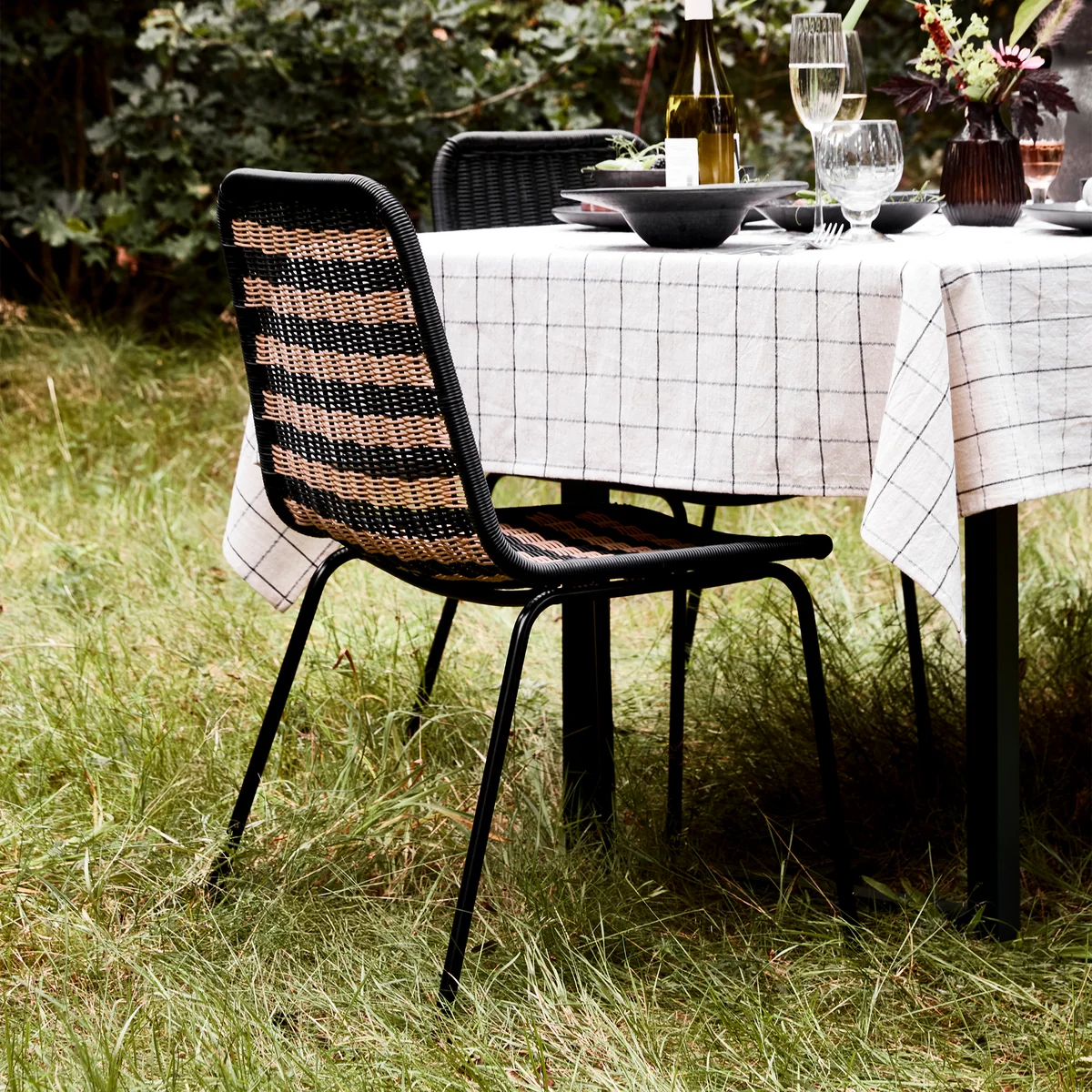 The Hapur Dining Chair from House Doctor is characterized by its natural look, which is mainly due to the woven plastic seat shell. The slightly curved seat offers great comfort and invites you to linger. The filigree four-legged iron frame adds industrial charm.