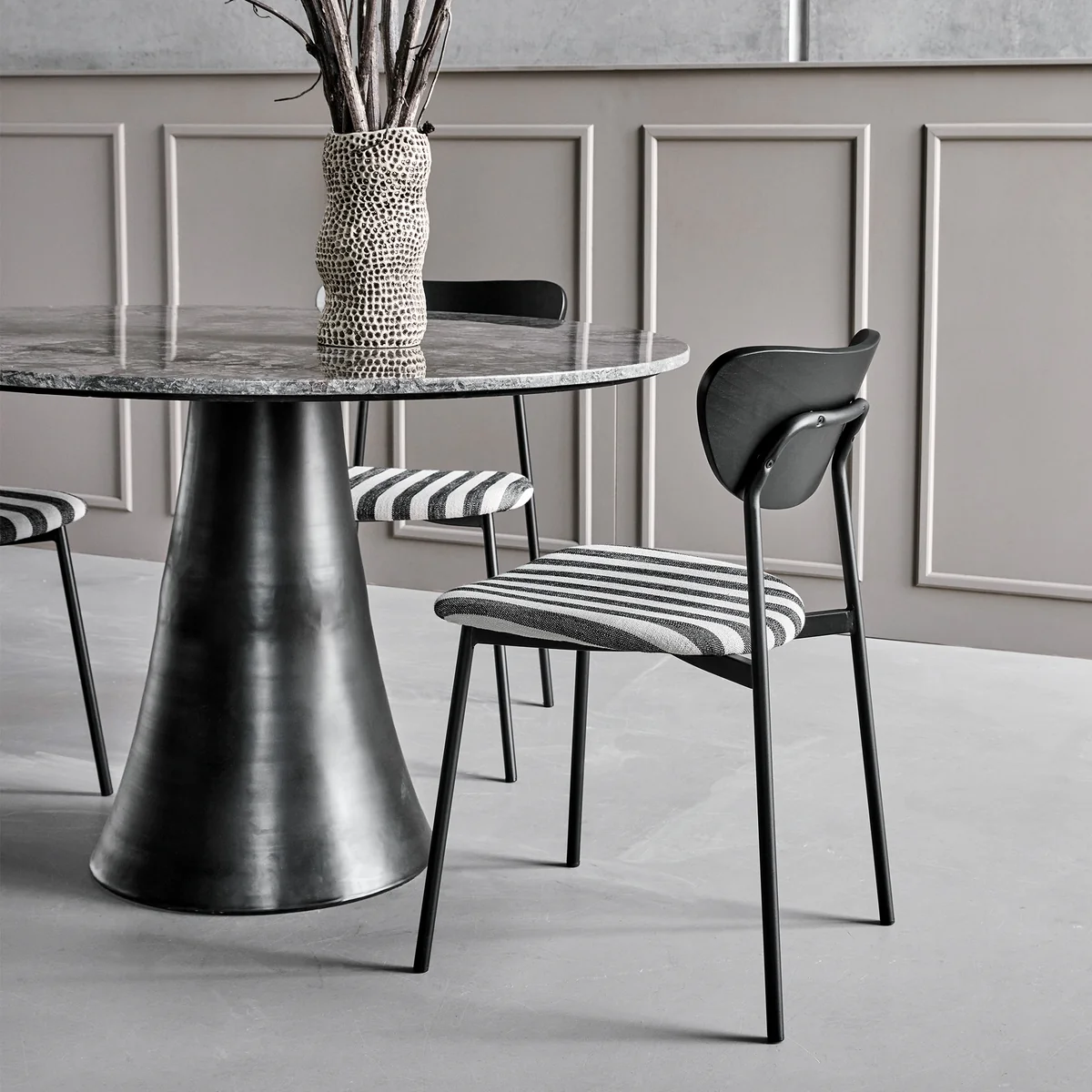 The all black Must chair from House Doctor combines a classic look with modern lines and will fit perfectly in any dining room. The wooden backrest contrasts attractively with the faux leather seat and lightweight steel frame. The must-have chair combines comfort and style and will make festive evenings with friends even more enjoyable. Even if you change the dining table in the future, this chair will always keep its stylish charm and will match any material.