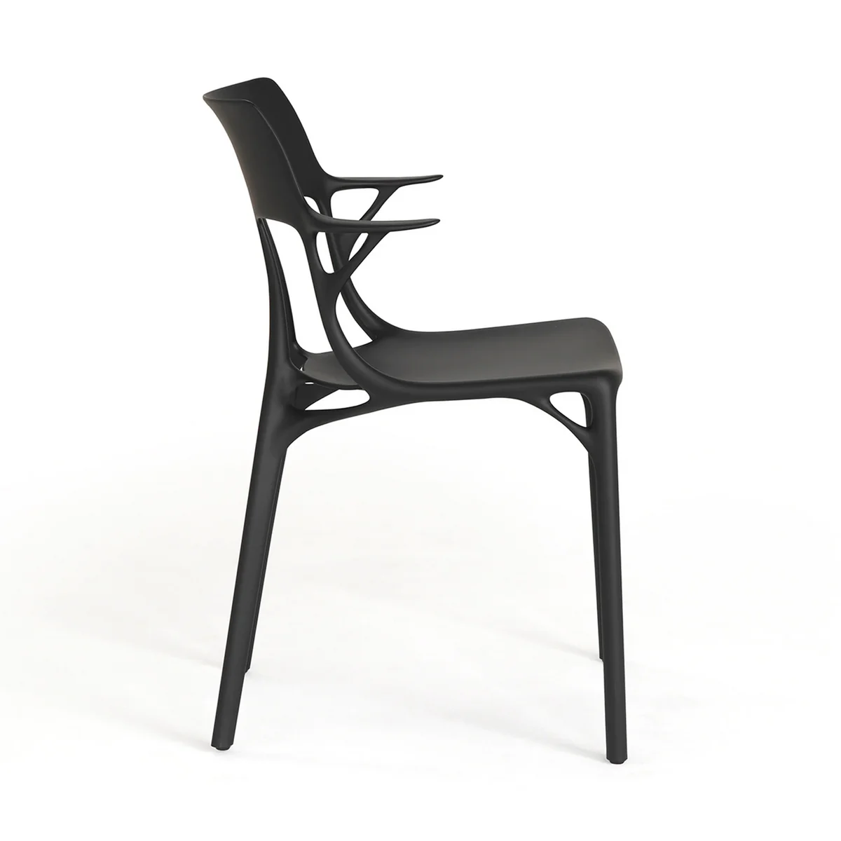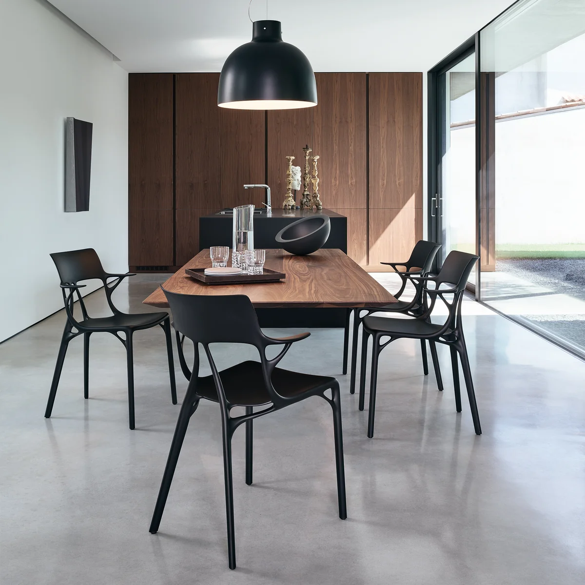 The AI chair by Kartell attracted all eyes at the Milan Furniture Fair 2019. Although the chair is identified as a design by Philippe Starck, an artificial intelligence is responsible for the design, as the name AI - "Artificial Intelligence" suggests. Starck worked for two years with the 3D software company Autodesk on a chair that had to meet the requirements of as little material and maximum stability as possible. Bodies and materials were analysed again and again in order to achieve the best possible result. The result is a chair that appears organic and bears the signature of designer Philippe Starck.