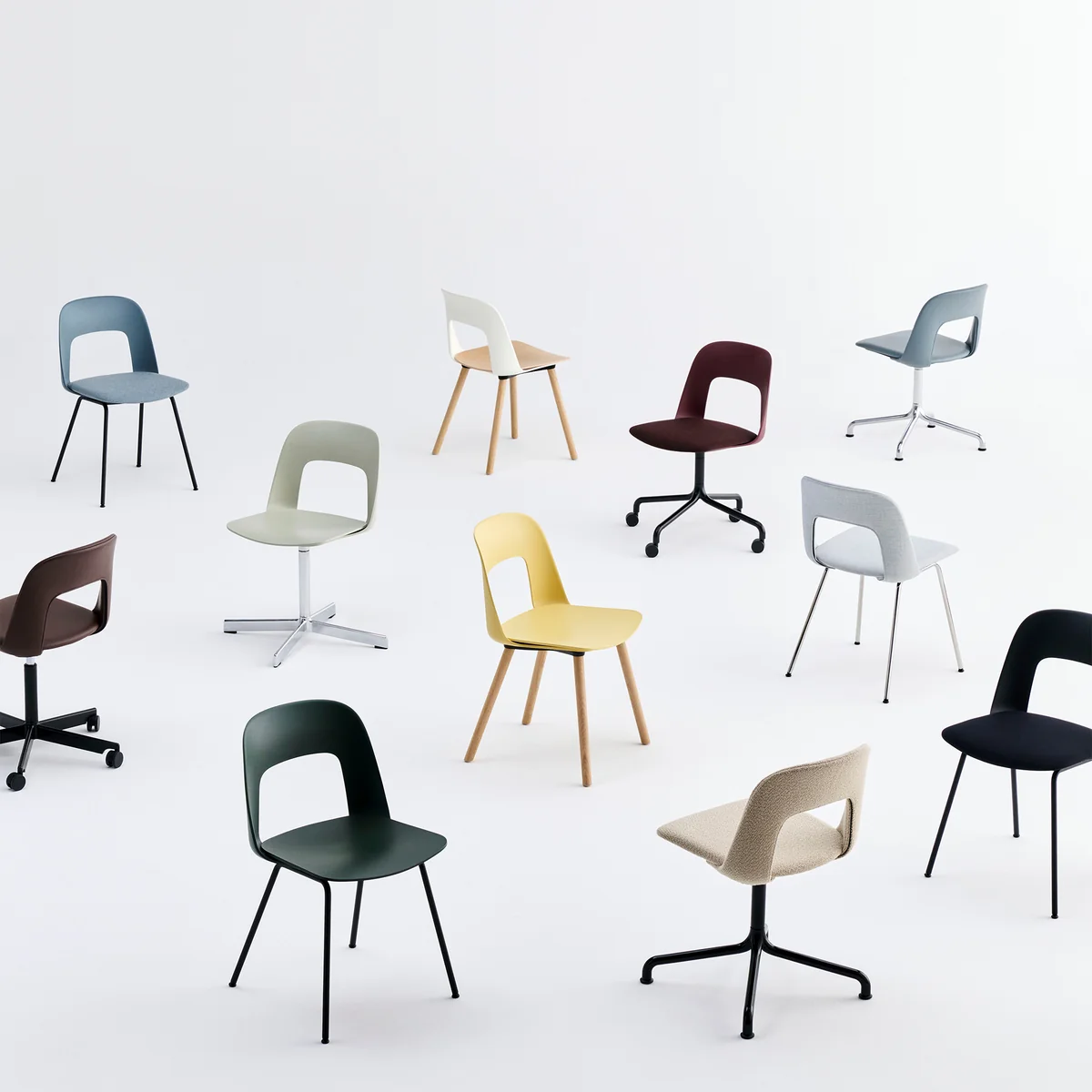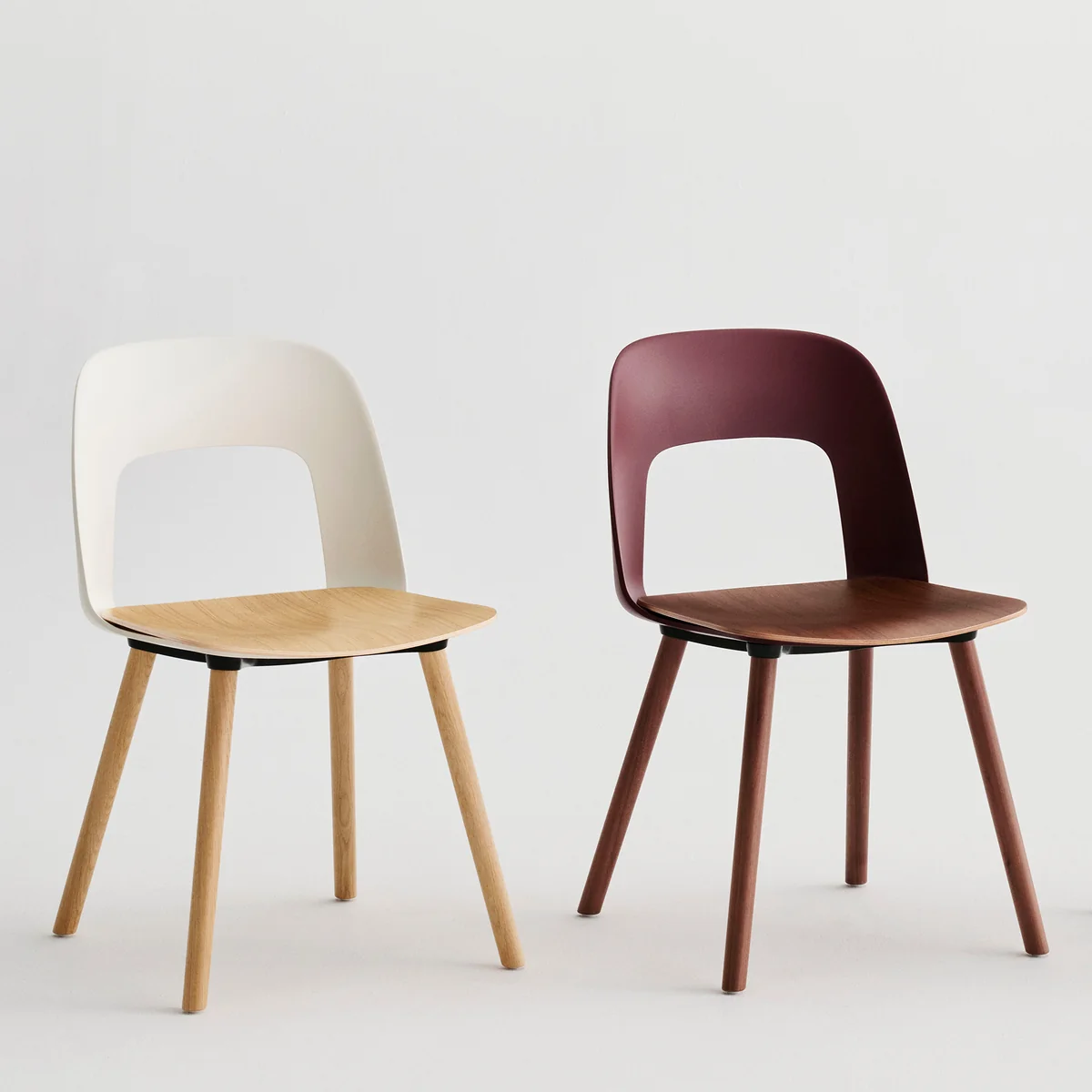 The 122 version with rounded wooden legs brings additional warmth and timelessness to the design while also ensuring a high level of stability. The backrest is made from at least 96% post-consumer recycled plastic and is available in various colors.