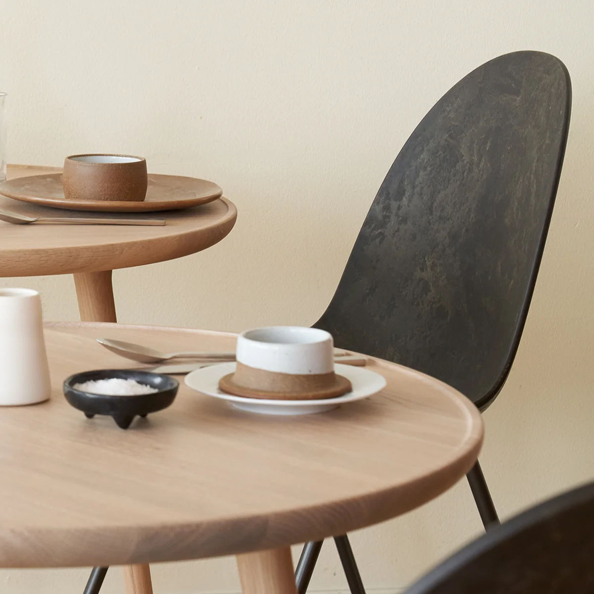 The Eternity Chair by Space Copenhagen for Mater inspires with its modern look and sustainable Mater ials. Eternity Is made from circular Mater ials. Waste coffee shells, upcycled industrial plastic waste, and recycled fiberglass are used to make the seat shell. The legs of the chair are made from recycled steel. Eternity Is a supremely comfortable and functional chair with industrial and sculptural details.