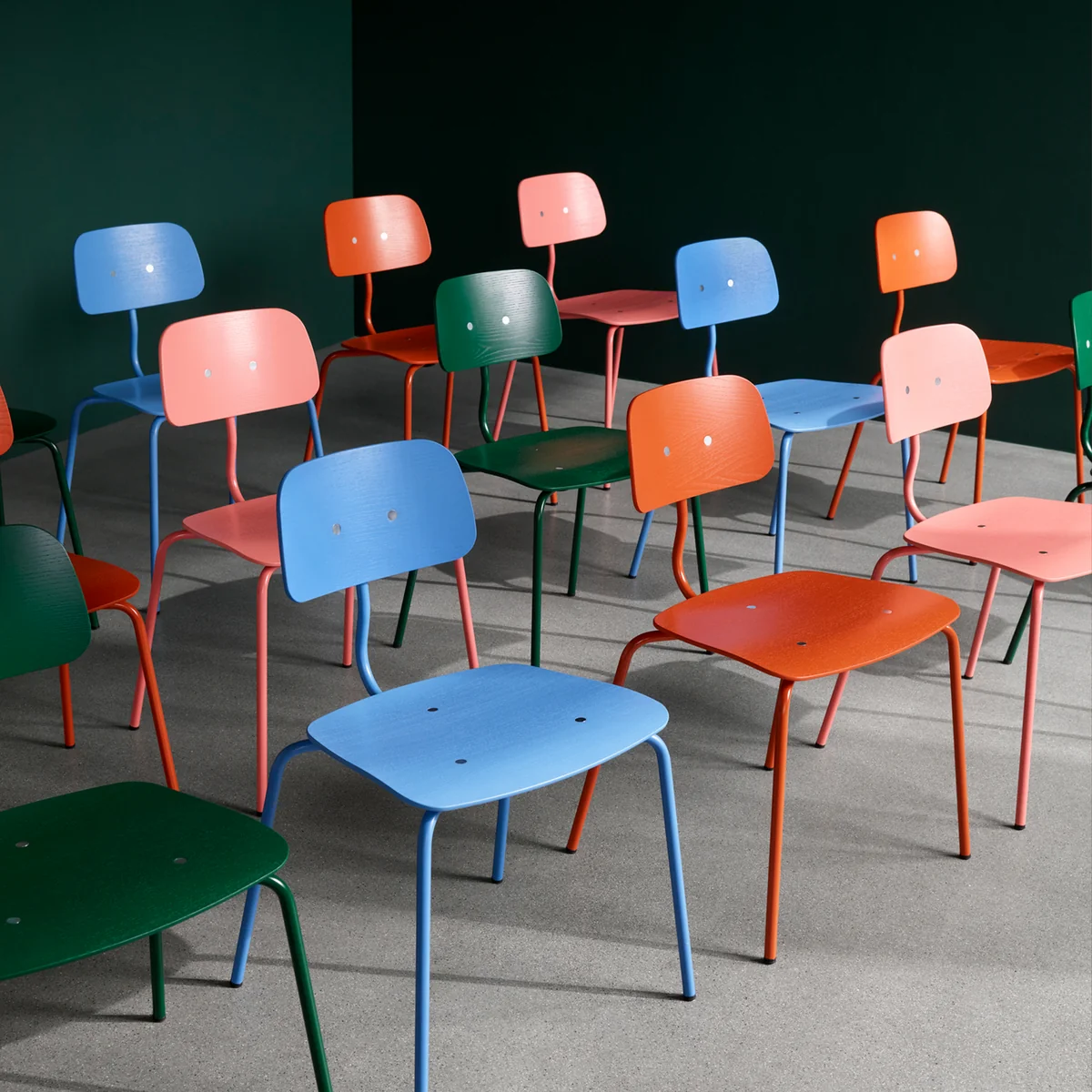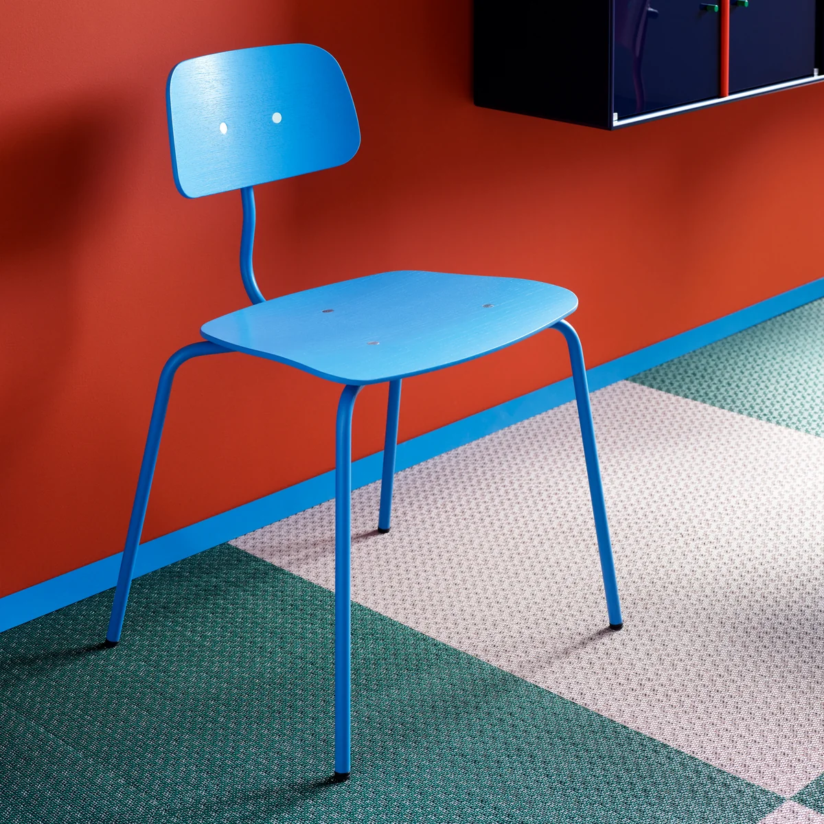 The KEVI 2060 chair from Montana presents an architectural and iconic look, which is particularly brought out by the vibrant colors. The design comes from the pen of architect Jørgen Rasmussen, who dresses the chairs in different coats without losing the original design.