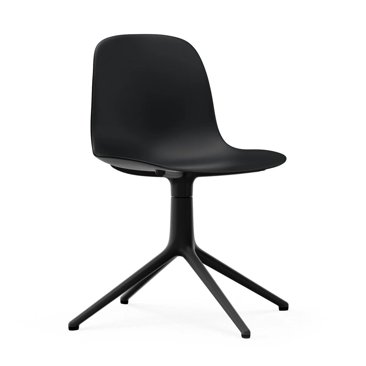 The typical seat shell of the Form series is also produced in the swivel chair in polypropylene in various colours, while the Form swivel frame is available in black, white and polished aluminium. The frame holds the seat shell with slender arms that meet in the middle and become four chair legs.