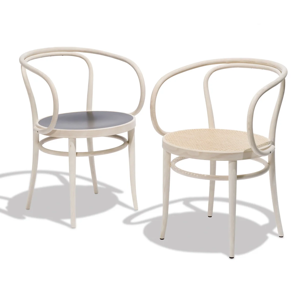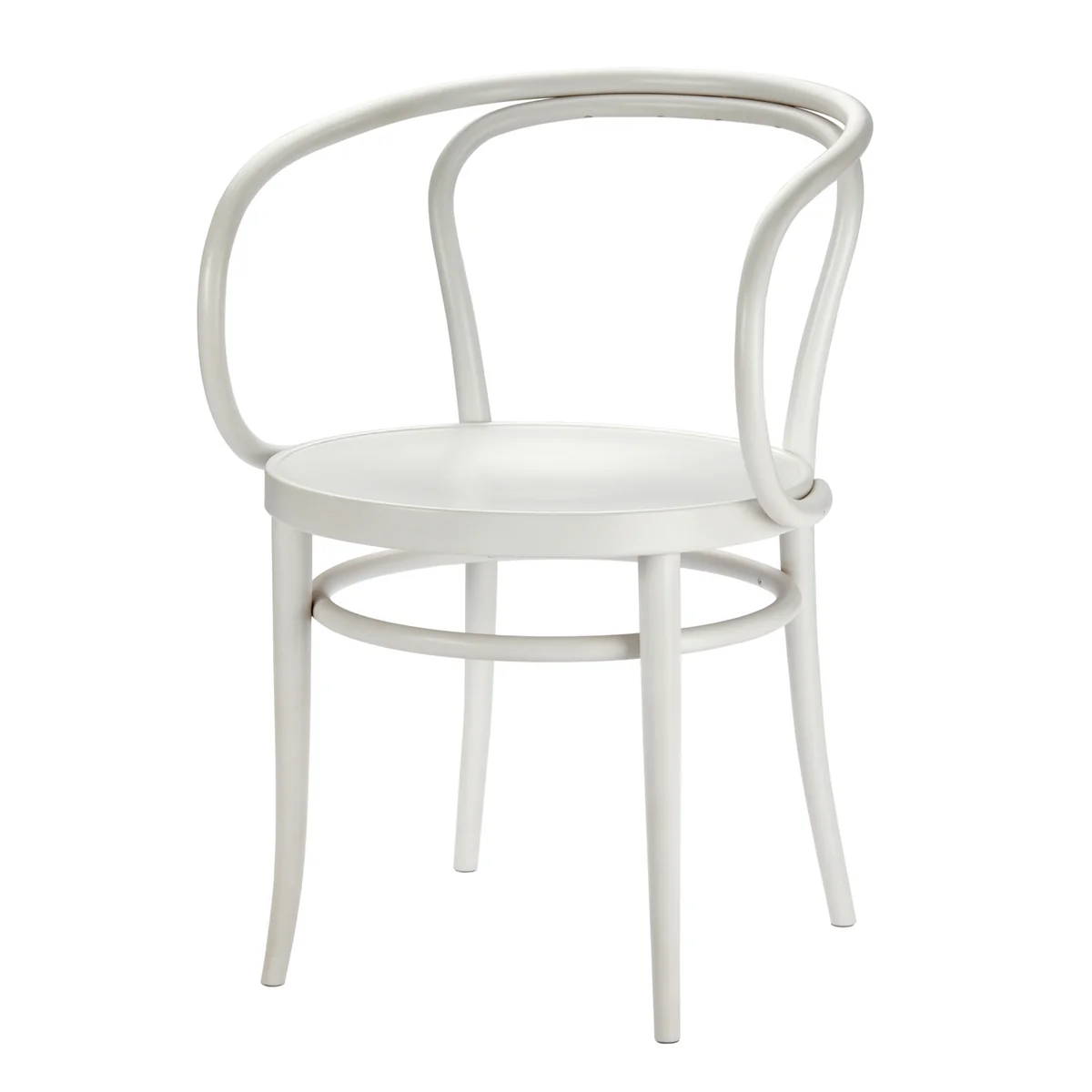 The 209 bentwood chair by the Thonet brothers was launched as early as 1900 and is a variation of the famous 214 café chair designed by Michael Thonet , the inventor of bentwood technology. Unlike the 214 chair, the 209 model has a cantilevered bracket that is both a backrest and armrest, offering even more comfort.
