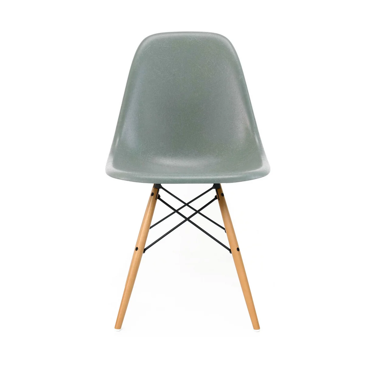 Der Eames Side Chair DSW ( D ining Height S ide Chair W ood Base) wurde 1948 von Charles und Ray Eames bei dem Wettbewerb ‚International Competition for Low-Cost Furniture Design‘ als Entwurf vorgestellt, gewann den zweiten Preis und ging nur wenig später in die Produktion. Die organisch geformte Sitzfläche wurde zunächst aus mit Fiberglasfasern verstärktem Polyesterharz gefertigt, das sich als besonders leicht formbar, komfortabel und angenehm in der Haptik erwies. Mit diesem für die Möbelindustrie neuem Material, gelang es den Designern, eine einzigartige Sitzschale im zeitlosen Design auf den Markt zu bringen.