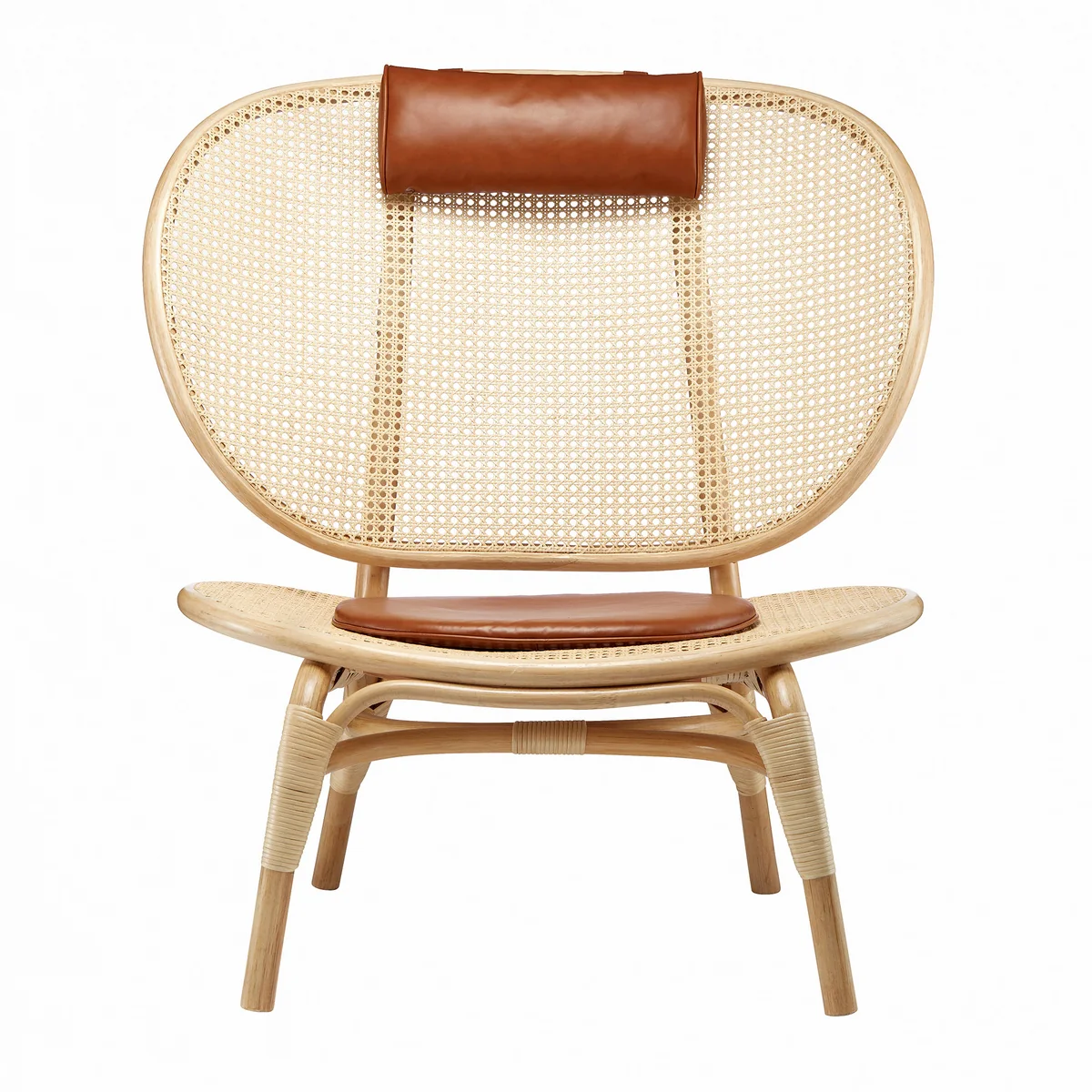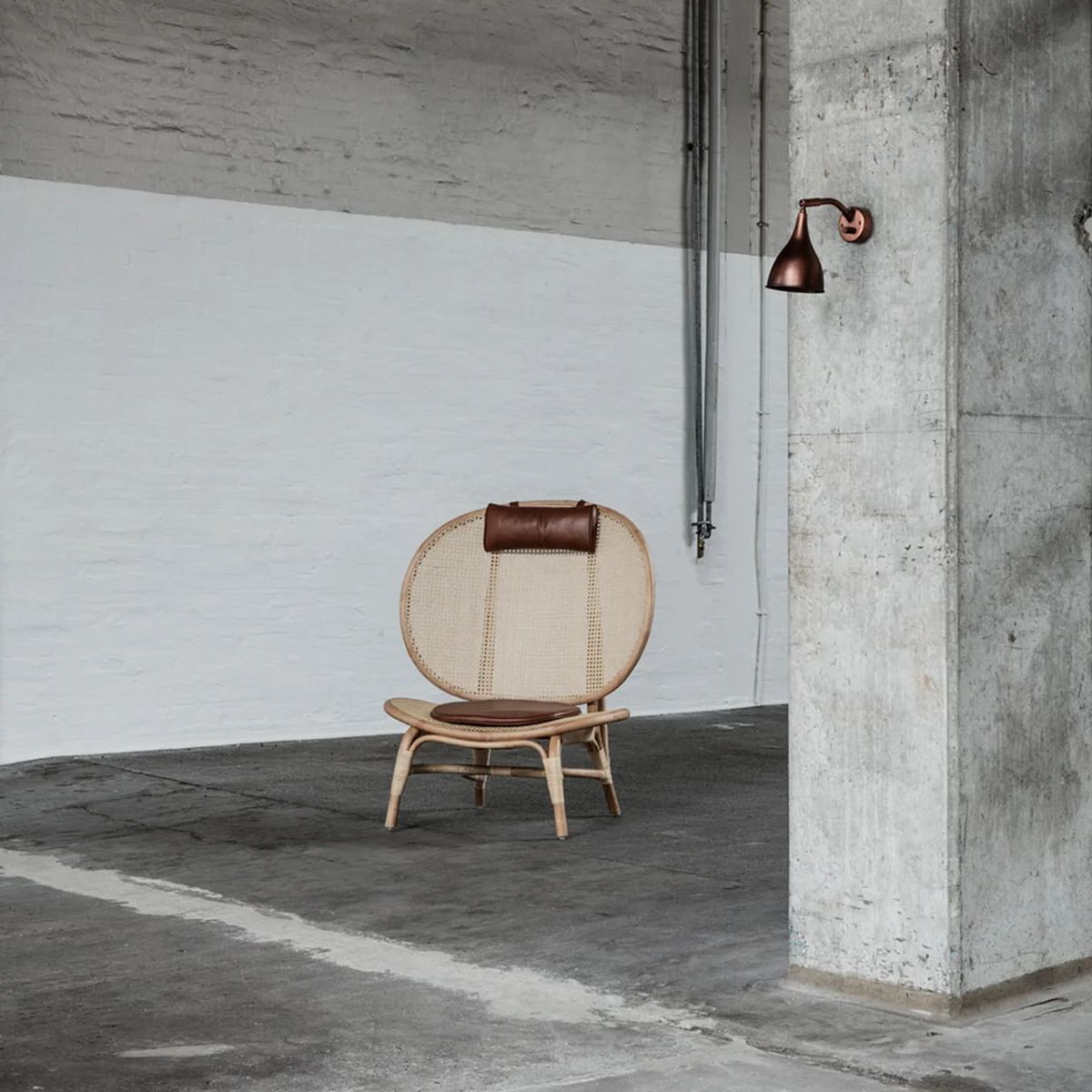 The Nomad Lounge Chair by Kristian Sofus Hansen and Tommy Hyldahl for Norr11 is a Nordic interpretation of the traditional Moroccan wicker chair. The name of the chair is composed of the words "Nordic" and "Maroccan". As a reinterpretation of the complex wicker chair, the Nomad Lounge armchair is made from a single piece and its construction is reduced to the essentials.