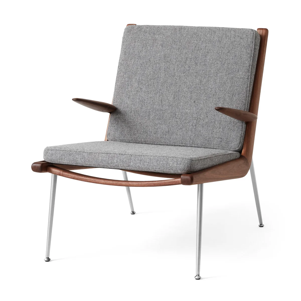 First introduced in 1956, the Boomerang HM2 Loungechair by & Tradition by the duo Hvidt & Mølgaard has a sleek and streamlined form. From its hand-polished wooden frame to its slender brass legs, the Boomerang is a masterpiece of Danish design.