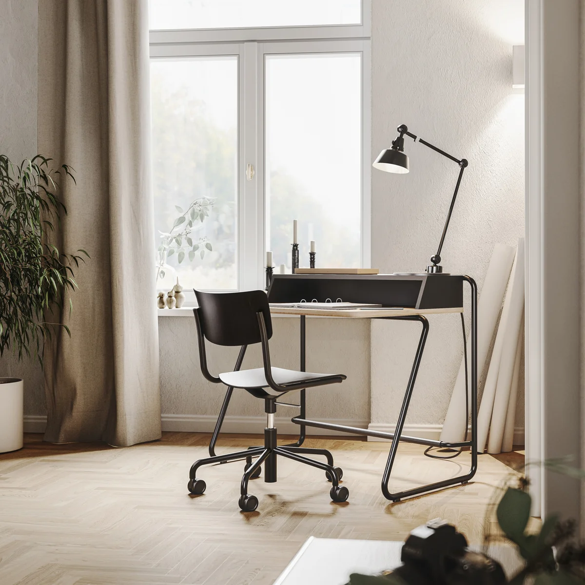 The S 43 DR office chair from Thonet is the optimal work chair for anyone looking for a sustainable design product with added value. First designed as the "rear-legless cantilever chair" S 43 by Mart Stam in 1931, the design object has made history with its timeless design. The pure, restrained form of the original cantilever chair lives on in the new models: Aesthetic as well as material detail reduction and clear lines characterize this swivel chair.