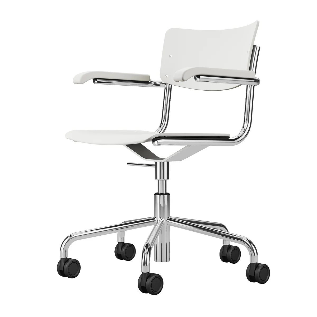 The S 43 FDR office chair by Mart Stam for Thonet cuts a fine figure anywhere! The aim of the S 43 FDR was to design an office chair for Stam that provides a high level of utility, while at the same time being economical in terms of aesthetics and materials. The straight lines and minimalist look are the result of this.