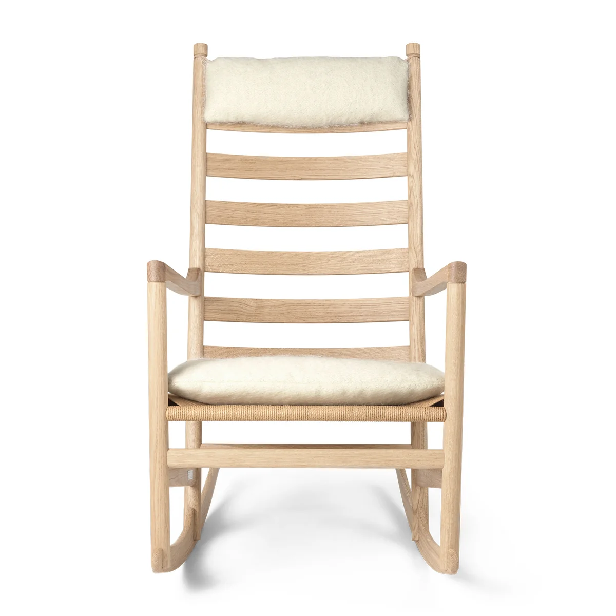 The CH45 rocking chair - developed in 1965 as part of a comprehensive furniture collection for Carl Hansen & Søn, bears the unmistakable signature of renowned designer Hans J. Wegner. This rocking chair by Wegner is characterized by a balanced mix of serenity and elegance, combined with a modern Nordic aesthetic. Optional are the CH45 seat and neck cushion are available as an option.