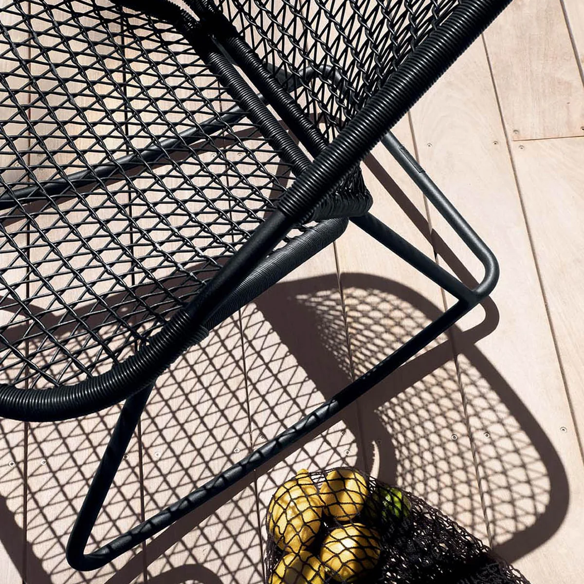 The frame of the chair is made of aluminum tubing, while the seat is made of a weave of synthetic outdoor fibers of polyethylene. Both give the chair an extremely high durability. The rocking chair can be used both indoors and outdoors.