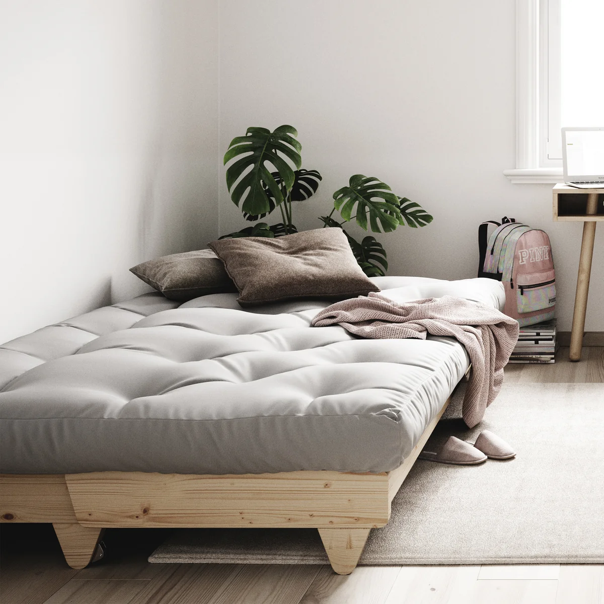 The Fresh sofa bed from Karup Design brings a breath of fresh air to any interior. In an upright position Fresh adds a touch of modern style to any room thanks to its clean lines and low profile. By simply lifting the frame, the sofa can be placed on the practical wheels that allow it to be easily moved when needed. Releasing the frame creates a comfortable and pleasant bed for overnight guests.