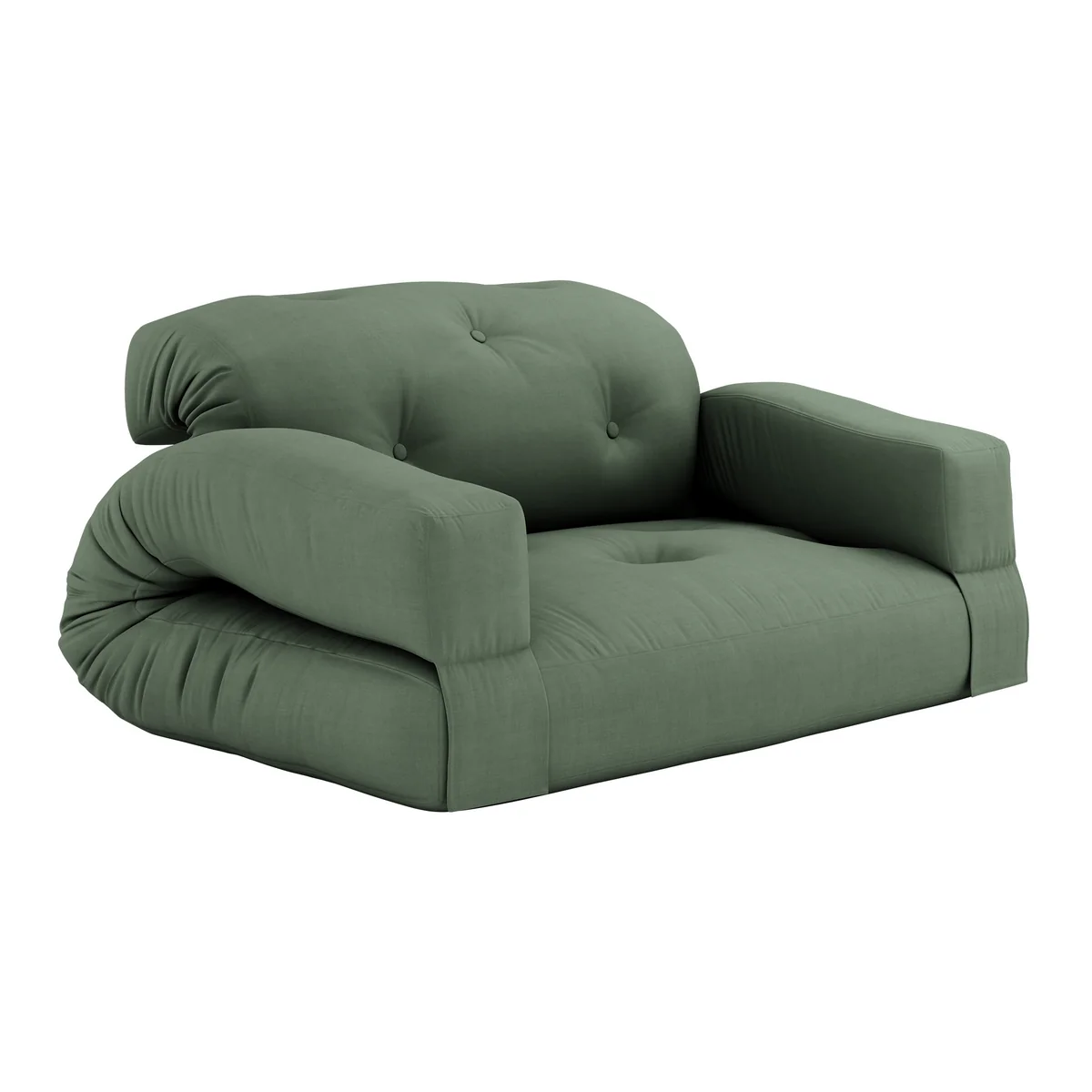 Hippo is a comfortable futon sofa that easily converts into a mattress. By loosening the back of the sofa and lifting the armrests, it lies Hippo flat and becomes a thick, soft mattress perfect for guests and sleepovers.