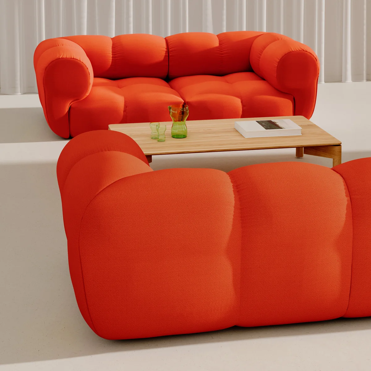 The Sander sofa from OUT Objekte unserer Tage offers an outstanding relaxation experience. The extremely soft upholstery is reminiscent of a mound of marshmallows and conveys a heavenly feeling. The design shows passion and postmodern influences, which is reflected in the design language. The aim of this sofa was to offer maximum comfort and tranquillity without appearing stiff or boring.