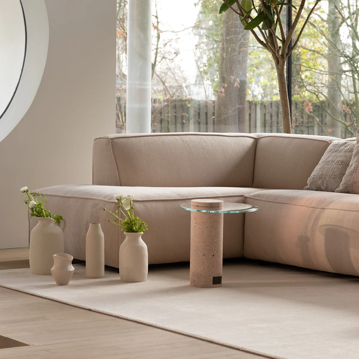 The Fat Freddy corner sofa from Zuiver invites you to leave everyday life behind. With its soft, textured rib fabric surface, natural color tones and deep, generous seat, it is perfect for hours of relaxation. The design is simple, but extremely comfortable - just right for modern living spaces with a feel-good factor.