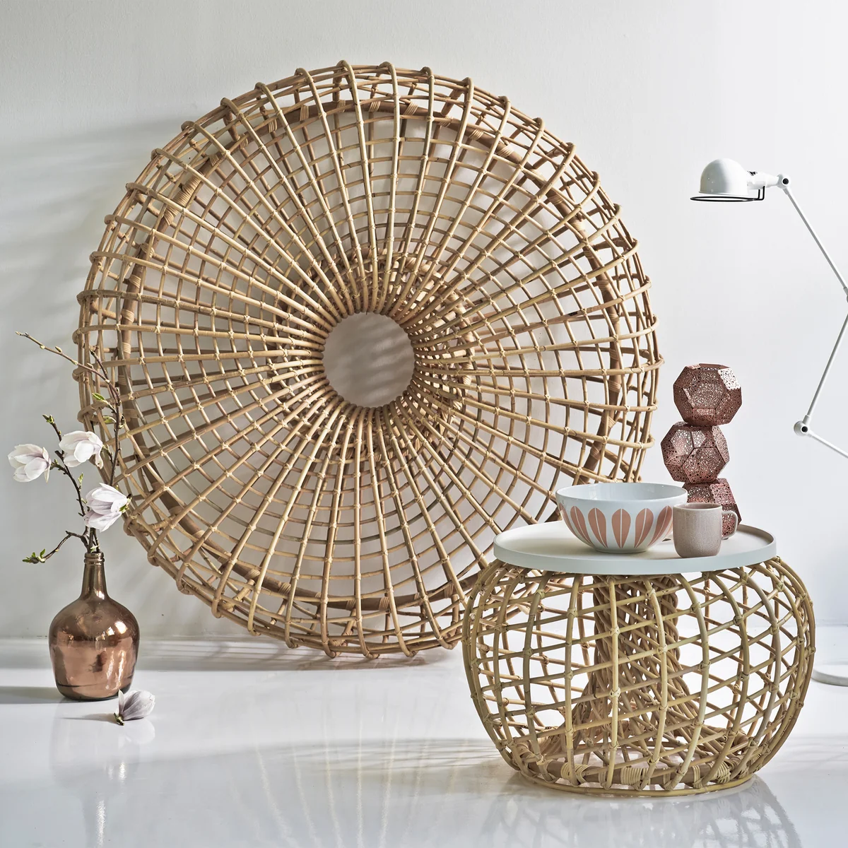 The Nest Stool from Cane-line for indoor use is characterized by its sculptural form, with which it becomes a real eye-catcher in every ambience. Made of rattan, the Nest Stool natural accents and turns every room into a cosy oasis of relaxation. The stool combines visual lightness with enormous robustness.
