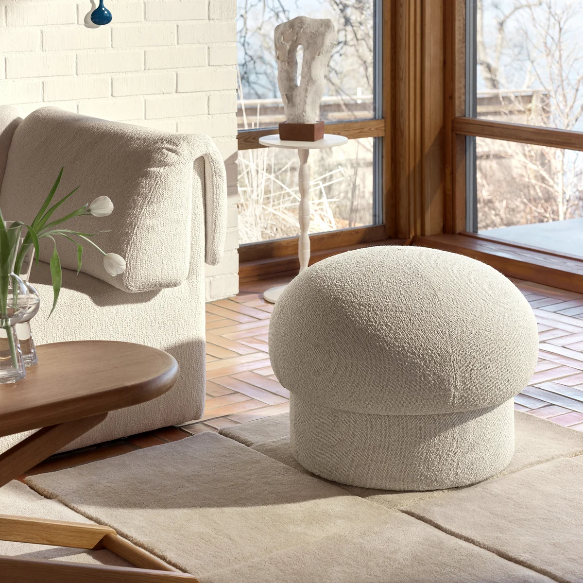Uno Is no exception in terms of care and attention to detail. A finely crafted wood structure supports an upholstery material with different densities: firm but soft. And it is obviously pragmatic how easy it is to move the pouf and how the recessed base makes it easier to get up from a seated position.
