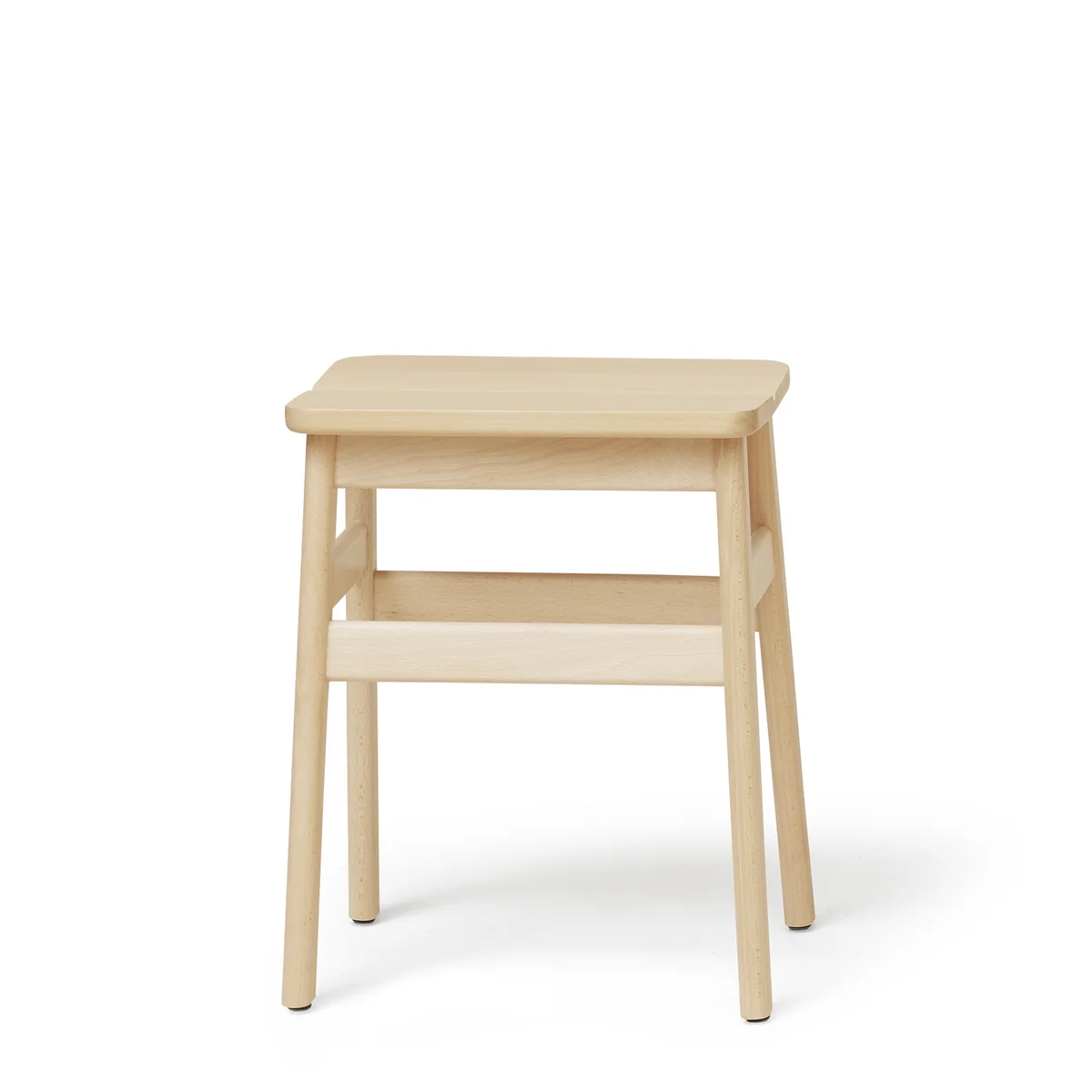 The Angel Standard stool from Herman Studio for Form & Refine is a masterpiece of craftsmanship that meets all kinds of requirements in terms of form, functionality and comfort. Both sides of the seat are inclined at an angle of 5 degrees to each other. This unusual design feature ensures maximum comfort and is therefore ideal for seating. Angle is ideal for private living spaces as well as public areas and can easily withstand heavy loads. The high-quality seat and solid beech wood legs ensure stability.