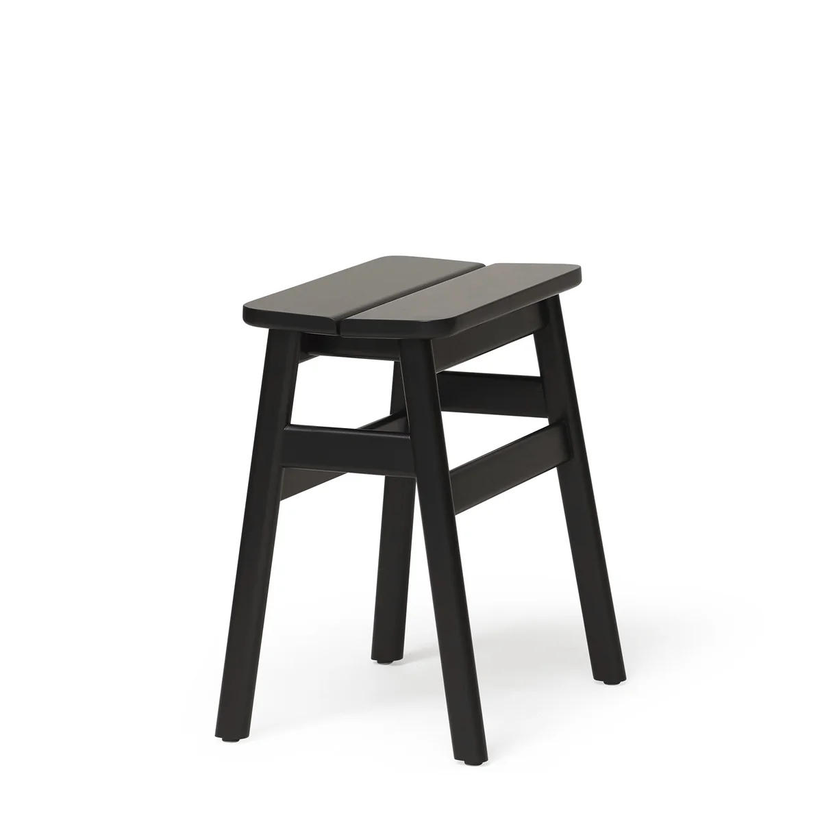 The Angel Standard stool from Herman Studio for Form & Refine is a masterpiece of craftsmanship that meets all kinds of requirements in terms of form, functionality and comfort. Both sides of the seat are inclined at an angle of 5 degrees to each other. This unusual design feature ensures maximum comfort and is therefore ideal for seating. Angle is ideal for private living spaces as well as public areas and can easily withstand heavy loads. The high-quality seat and solid beech wood legs ensure stability.