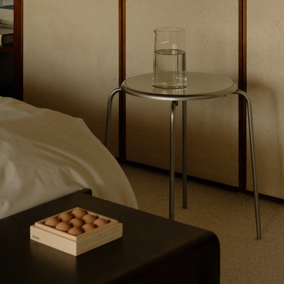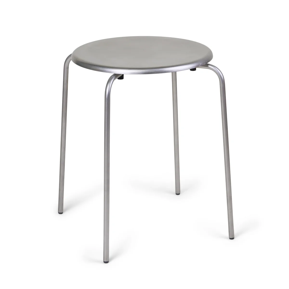 The Petit Rond stool, designed by Troels Grum-Schwensen, embodies minimalist design with maximum functionality. The compact, round seat and slim frame make it an ideal companion for cafés, restaurants or small living spaces. Made from brushed stainless steel, the stool impresses with its durability, lightness and surprising seating comfort. Thanks to its stackable shape, it can be stored in a space-saving manner - perfect for flexible room concepts. In the version with natural aniline leather, the stool has a warm, handcrafted touch that elegantly complements the industrial look.