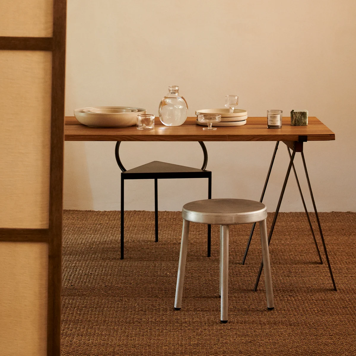 The Tasca stool from Frama is inspired by the local taverns in Portugal, called "Tascas". In collaboration with the Portuguese designer Pedro Sottomayor, designs Frama a lightweight aluminum stool for indoor and outdoor use. With a distinctive and hand-brushed finish, the Tasca Stool soft and pleasant in texture, presenting a rounded and smooth that envelops the body while sitting.