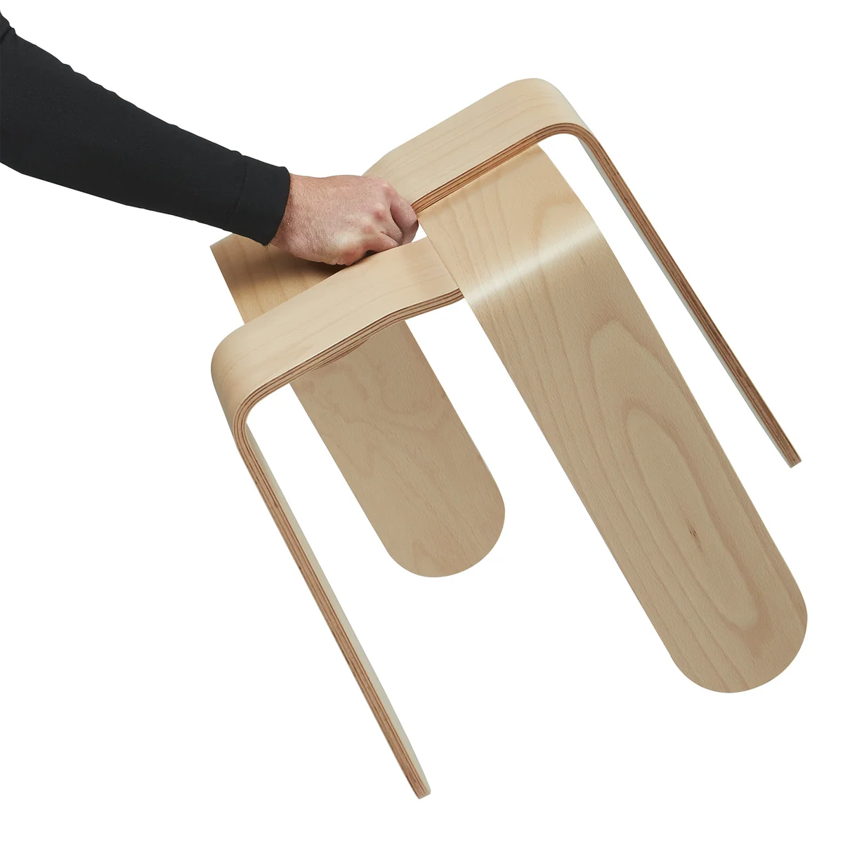 The stool is made of beech veneer and is available in different colours.