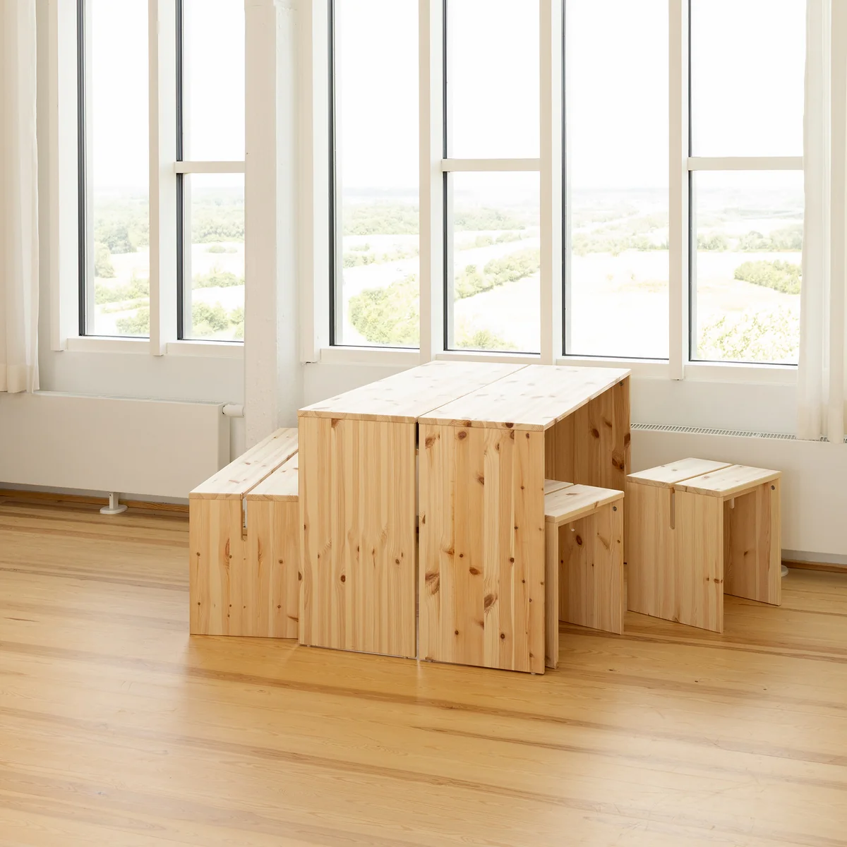 The JOIN-IN stool from Karup Design impresses with its simple elegance and functional design. Designed by C.F. Møller Architects, the stool is made of solid FSC®-certified pine wood and is manufactured in Europe. The characteristic wooden slats and narrow joints give it a modern, light look and emphasize the high-quality craftsmanship.