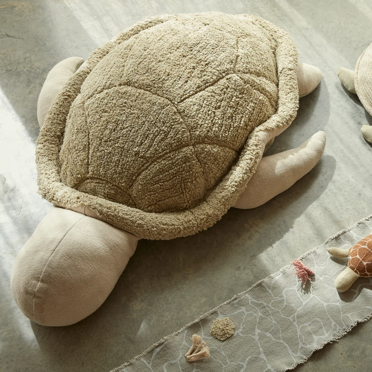 The Sea Turtle pouf from Lorena Canals is made of soft tufted cotton pile and is the perfect little seat for small breaks. The turtle features limbs made of natural colored canvas. The pouf cover can be washed if necessary, which shapes it into an all-rounder and must-have in the children's room. Visually, the pouf fits into any interior and offers versatile play options.