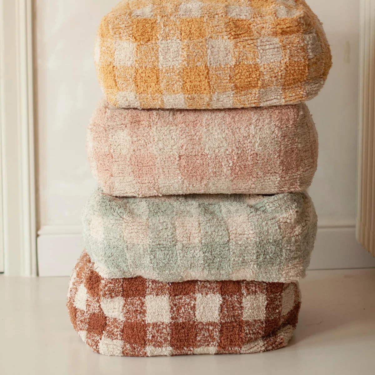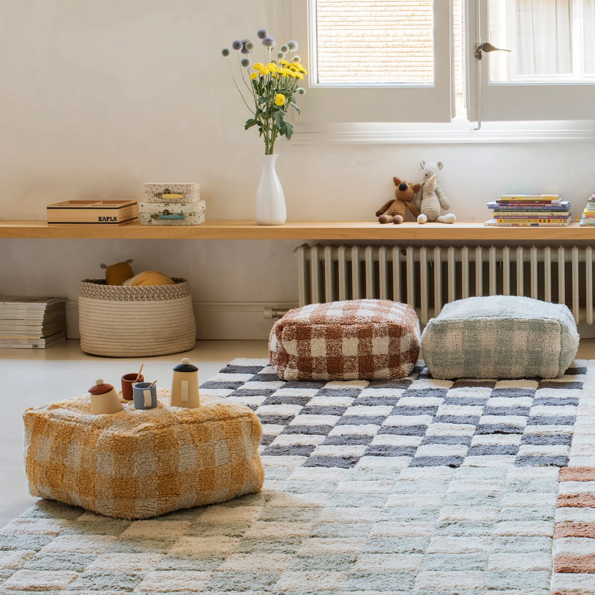 The Vichy Pouf from the house Lorena Canals captivates with its classic Vichy -check pattern. The great plush stool can be placed as needed - whether in the living room, children's room or even at the dining table. The cover is made of cotton and filled with polystyrene beads. The pouf in vintage look is available in a variety of beautiful colors.