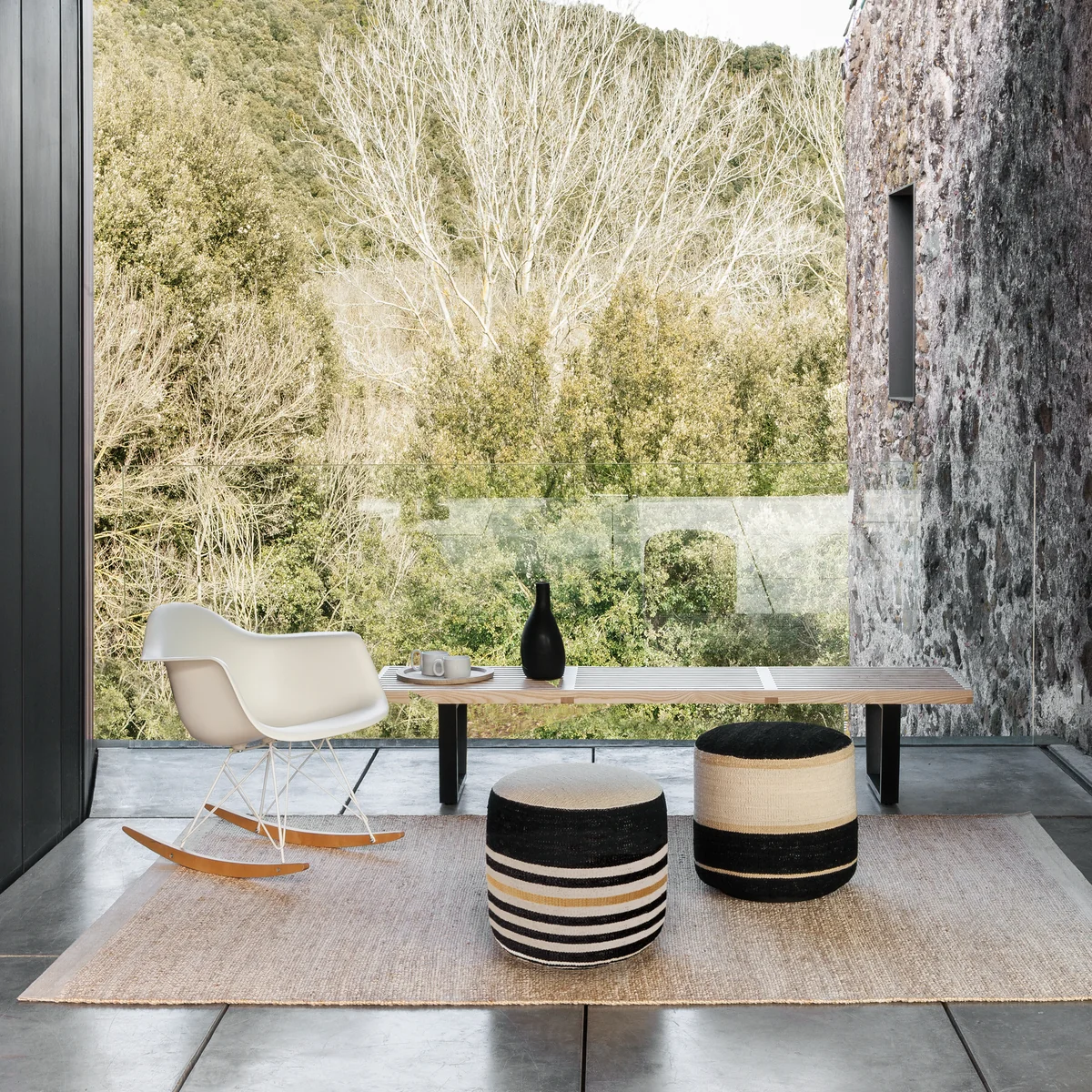 The Kilim Pouf by nanimarquina is a universal seating stool and brings the classic block design of rugs into the spatial dimension. With its timeless design, it will fit in any bedroom or living room. The Kilim Pouf was designed by Spanish designer and architect Marcos Catalán.