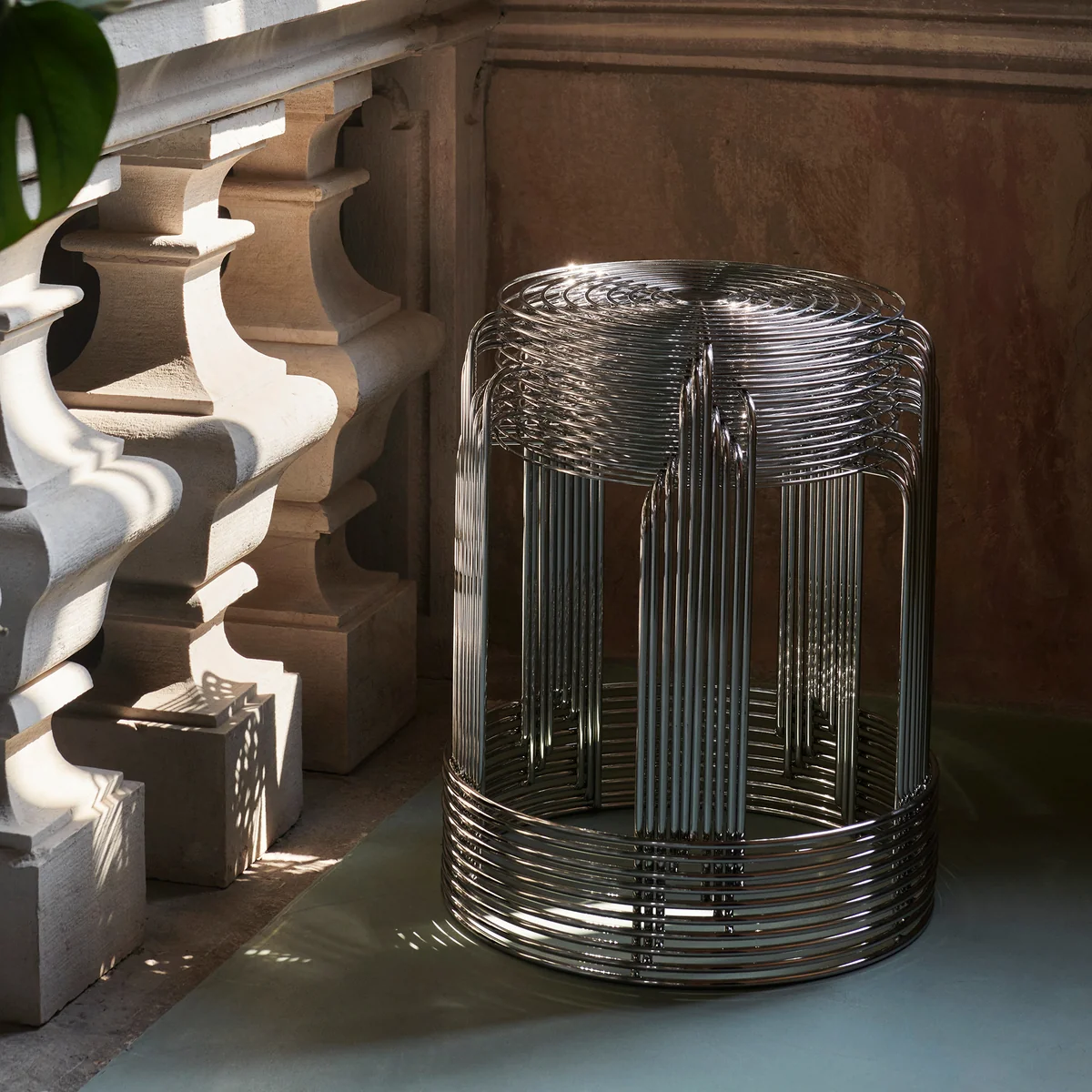 The Wire Hocker VP11 from & Tradition embodies Verner Panton's preference for geometric shapes and wire as a visual element. Wire was originally launched on the market in 1981. The new edition of the lightweight, stackable stool also serves as a versatile side table.