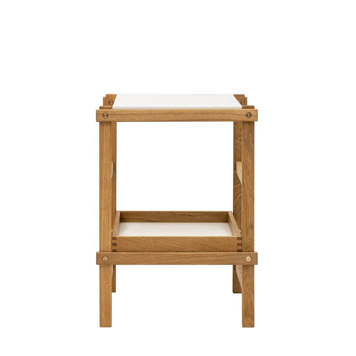 The Frame furniture system is available in different sizes and is made of Scandinavian solid wood and brass rivets.