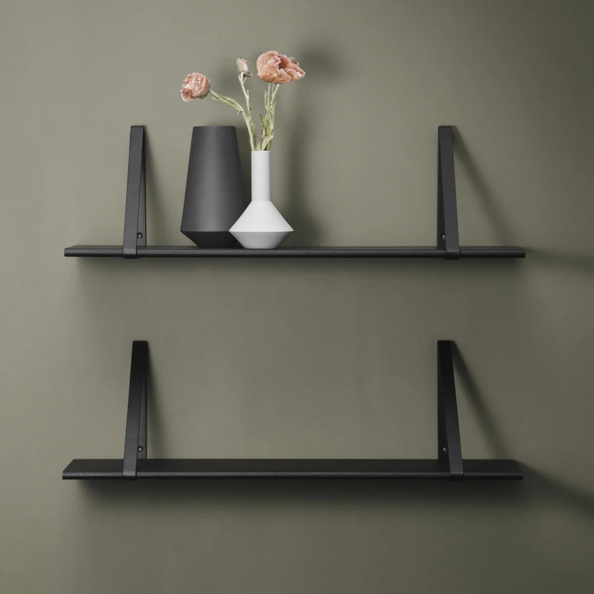 The Shelf Hangers system includes two elements: The oak wood shelves, stained, oiled or smoked as desired, and two painted hangers that are freely combinable. The versatility of it makes the Shelf Hanger suitable in all kinds of surroundings. Free combinations of different elements end up creative and majestic.