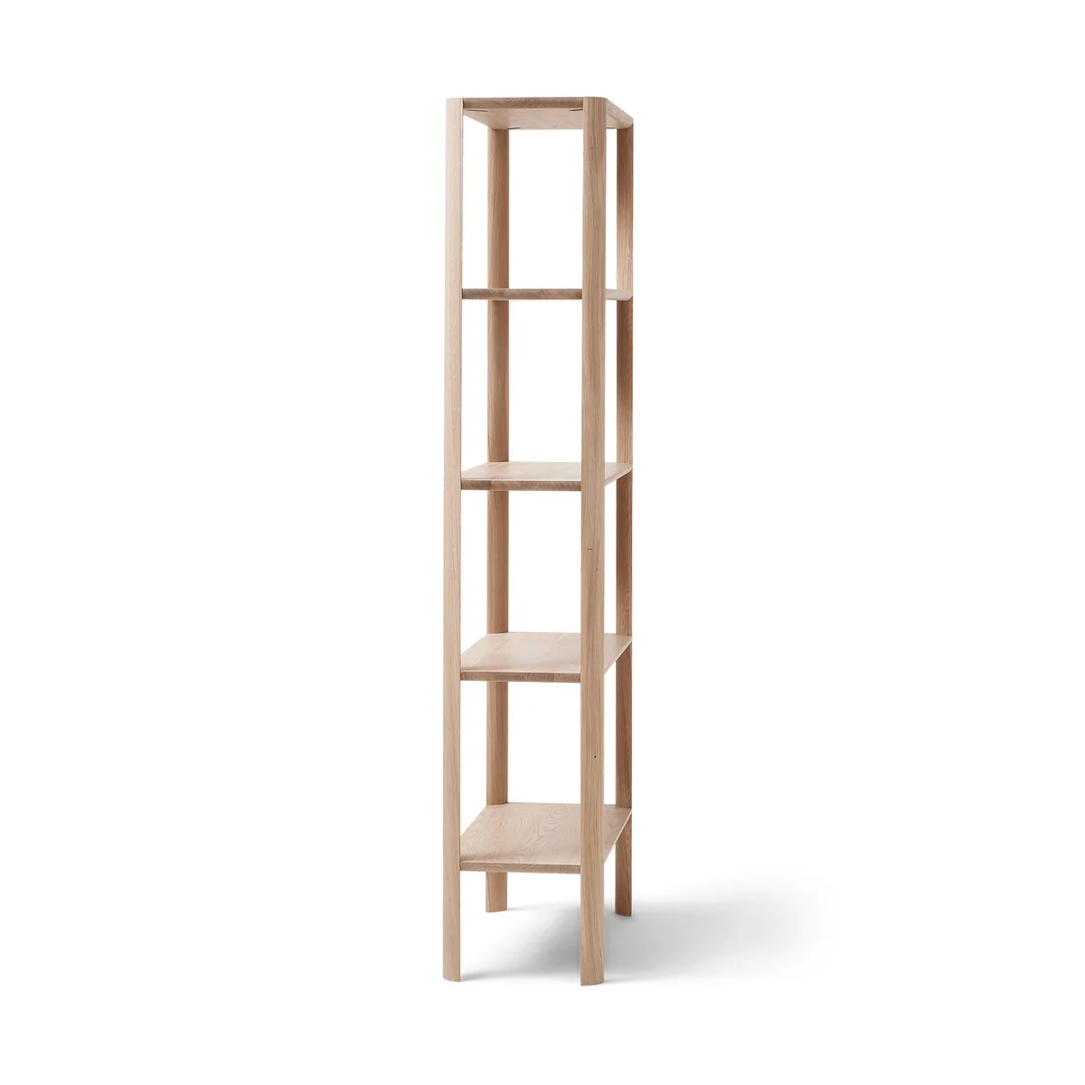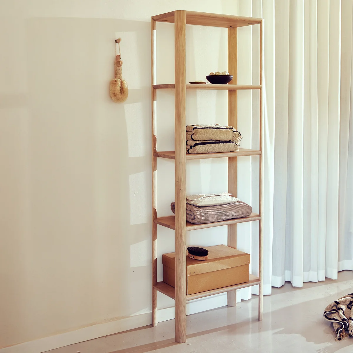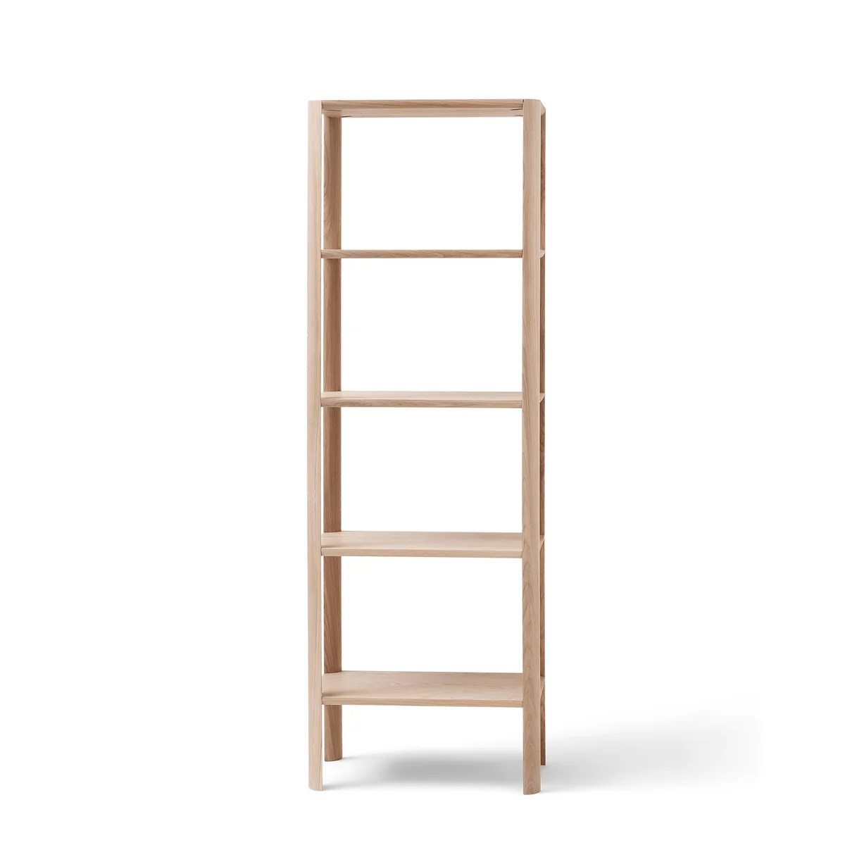 The Leaf shelf from Form & Refine shelf impresses with its combination of aesthetics, stability and storage space. It is characterized by its simple shape, which draws attention to the rounded, leaf-like shelf legs. The construction itself is straightforward with no visible screws or additional stabilizing elements. It therefore blends well into any living room, bedroom or office and also offers plenty of storage space for books, boxes and more.